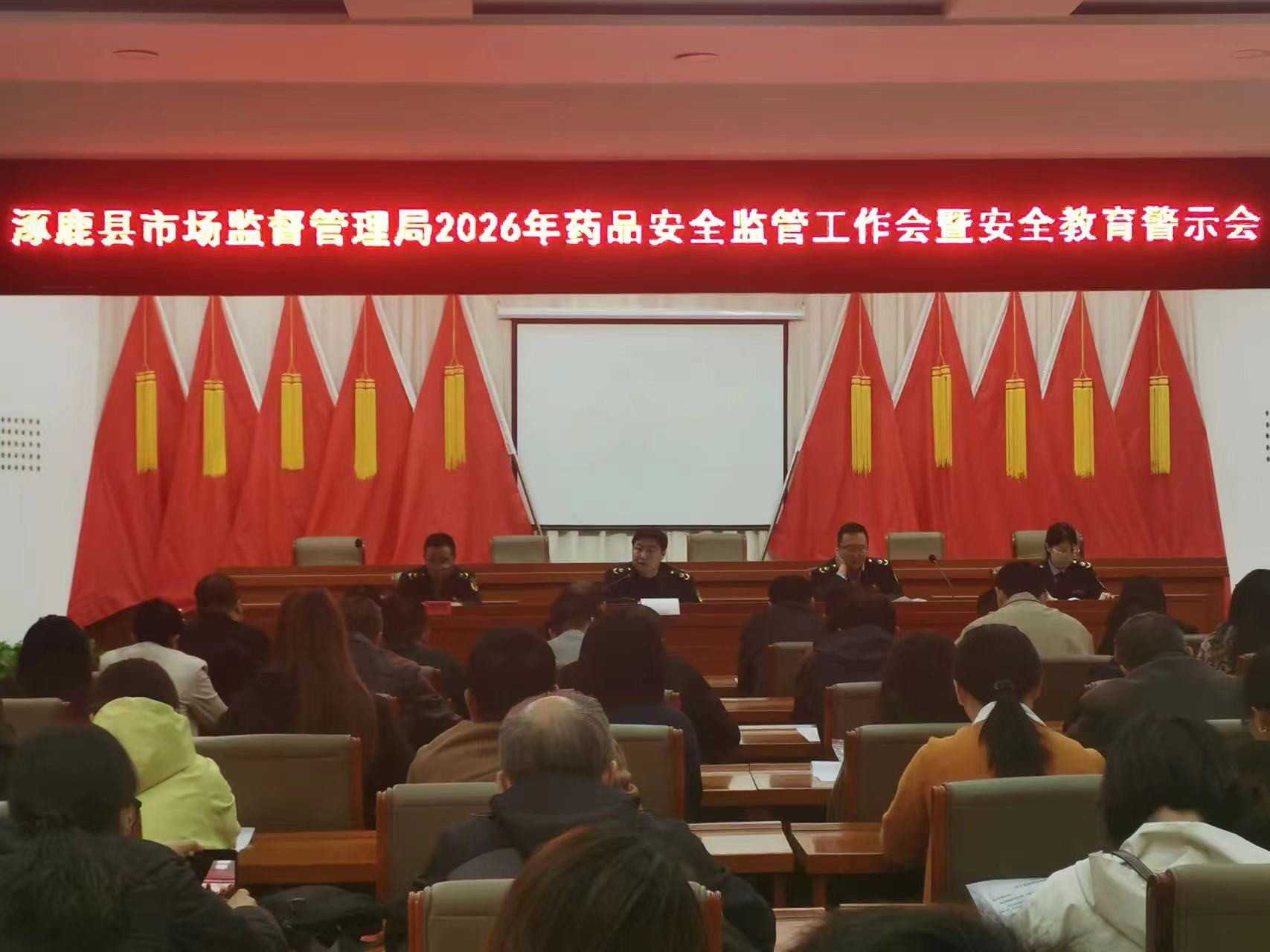 为筑牢全县药械安全防线,推动行业高质量发展,近日,涿鹿县市场监督管理局组织召开2026年全县药品安全监管工作会暨安全教育警示会。全县药械化经营企业、医疗机构负责人参会。