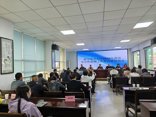 为加强全区药品安全性监测工作,切实保障人民群众用药用械用妆安全,2026年4月13日,名山区市场监管局联合名山区卫健局组织召开2026年药品安全性监测工作推进暨培训会。区市场监管局、区卫生健康局分管领导,市市场监管局药品科科长代德云同志,市药品审核查验及安全监测中心主任靳寿平同志、肖中莉同志,区内主要医疗机构负责人及负责不良反应/事件填报、上报人员共计30余人参会。