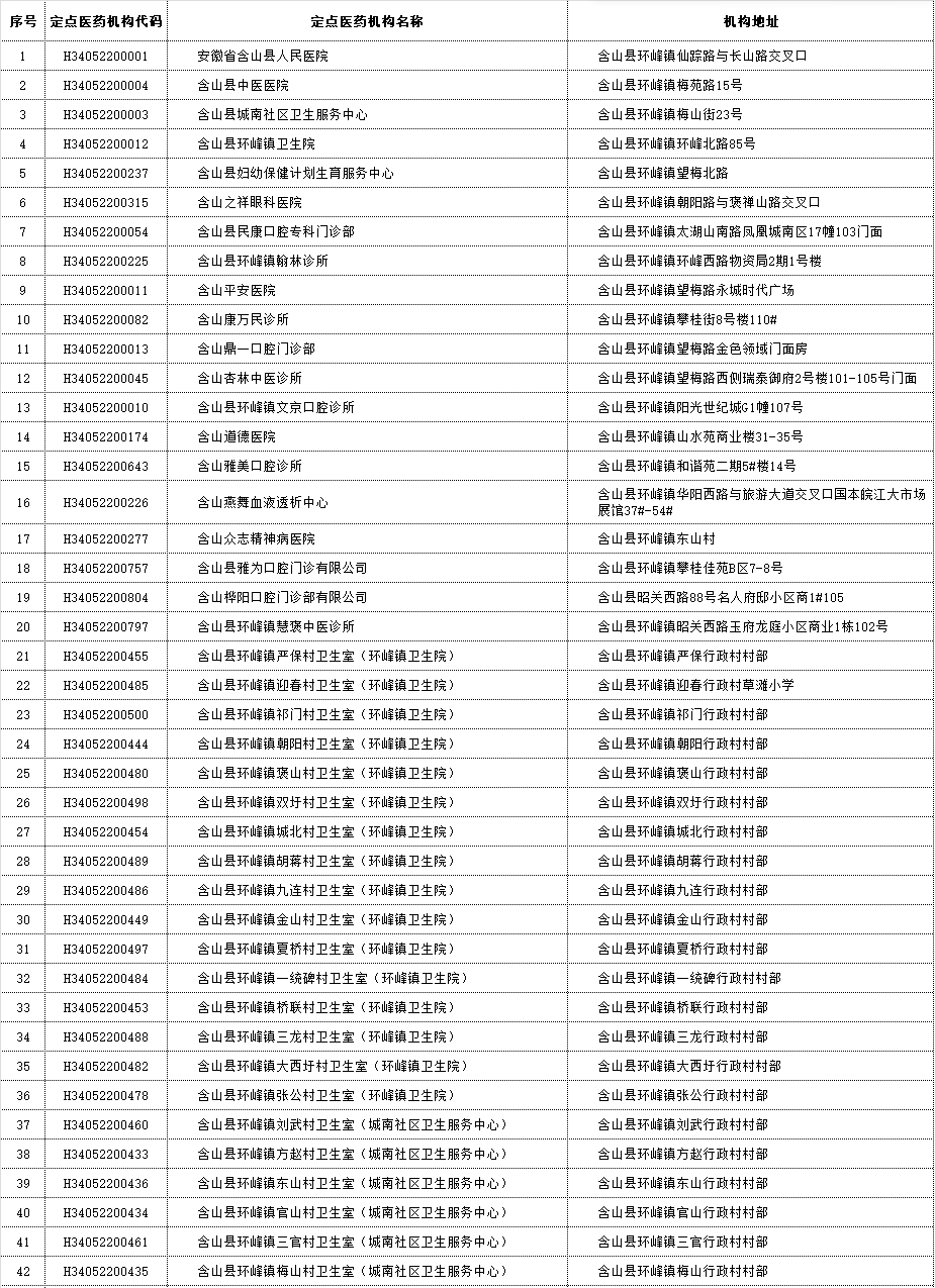 【马鞍山】关于向社会公布含山县定点医疗保障服务协议管理医药机构名单(2026年)