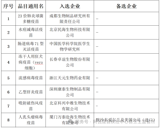 依据《中华人民共和国疫苗管理法》、《2025年自治区非免疫规划疫苗采购入围品种及价格目录》相关规定,严格按照阿瓦提县非免疫规划疫苗采购询价公示的要求,经询价组综合研究审定,确定各品类非免疫规划疫苗入选及备选供应公司如下: