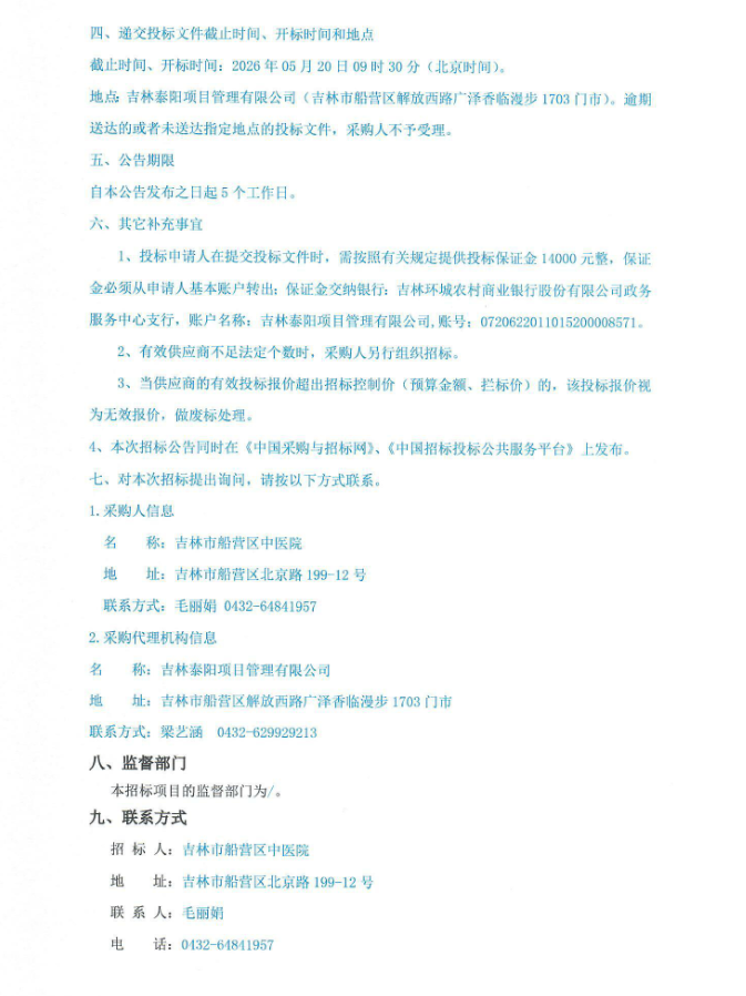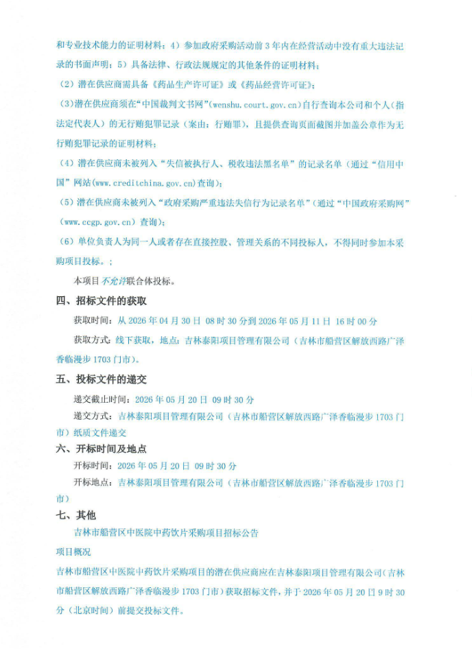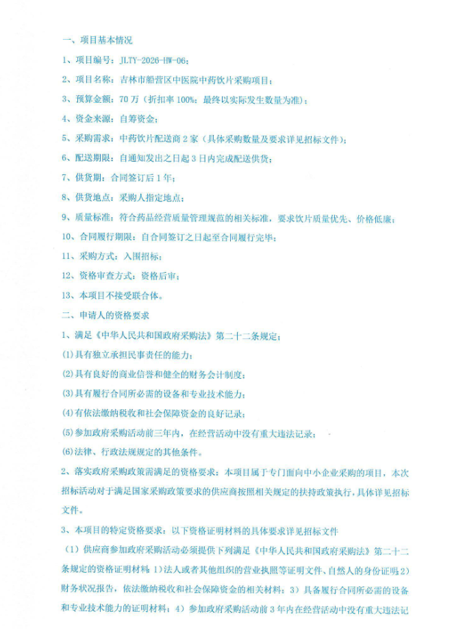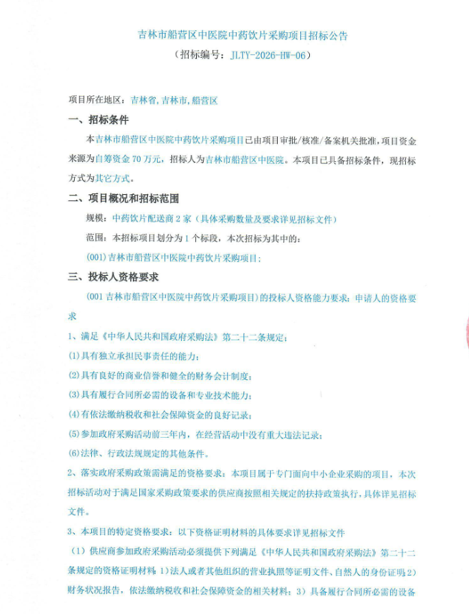 【吉林市船营区中医院】吉林省吉林市船营区中医院中药饮片采购项目招标公告