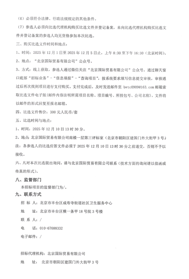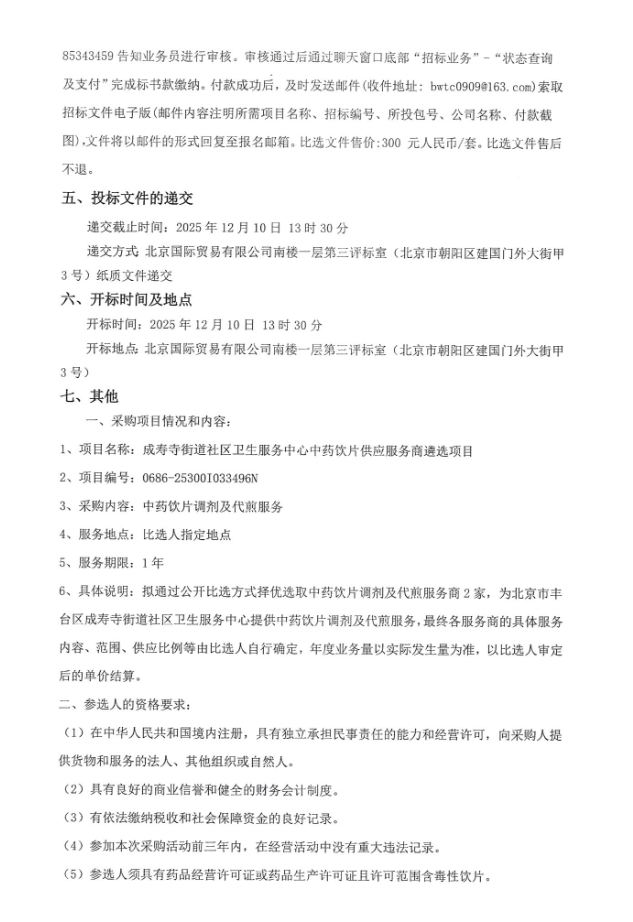 【北京市成寿寺街道社区卫生服务中心】北京市成寿寺街道社区卫生服务中心中药饮片供应服务商遴选项目比选公告