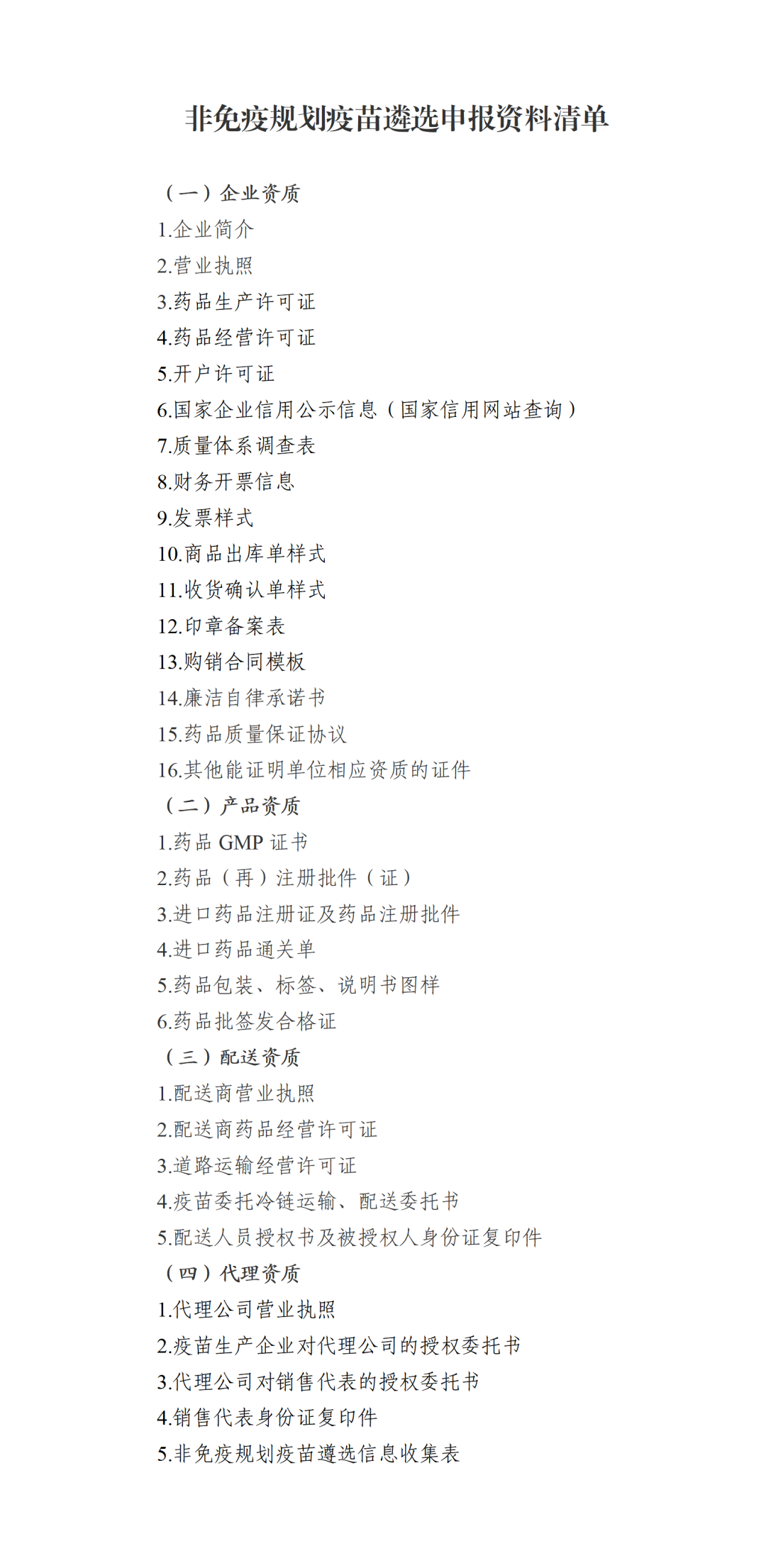 为认真贯彻落实《中华人民共和国疫苗管理法》《预防接种工作规范(2023年版)》要求,根据《四川省疾病预防控制局四川省医疗保障局非免疫规划疫苗挂网阳光采购职责备忘录(2024年)》《关于公示四川省2025年非免疫规划疫苗挂网阳光采购价格谈判结果的通知》(川药招〔2025〕72号)、《关于公示四川省2025年非免疫规划疫苗(增补)挂网阳光采购价格谈判结果的通知》(川药招〔2025〕291号)的文件精神,持续做好我县非免疫规划疫苗的采购供应和管理,满足辖区内疾病控制和群众健康需求,防范疫苗管理相关风险。秉承公开、公平、公正的原则,经研究,决定开展2026年中江县非免疫规划疫苗遴选,现将有关事项公告如下: