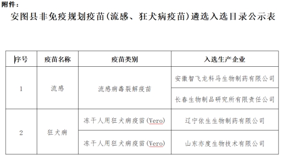 附件:《安图县非免疫规划疫苗(流感、狂犬病疫苗)遴选入选目录公示表》
