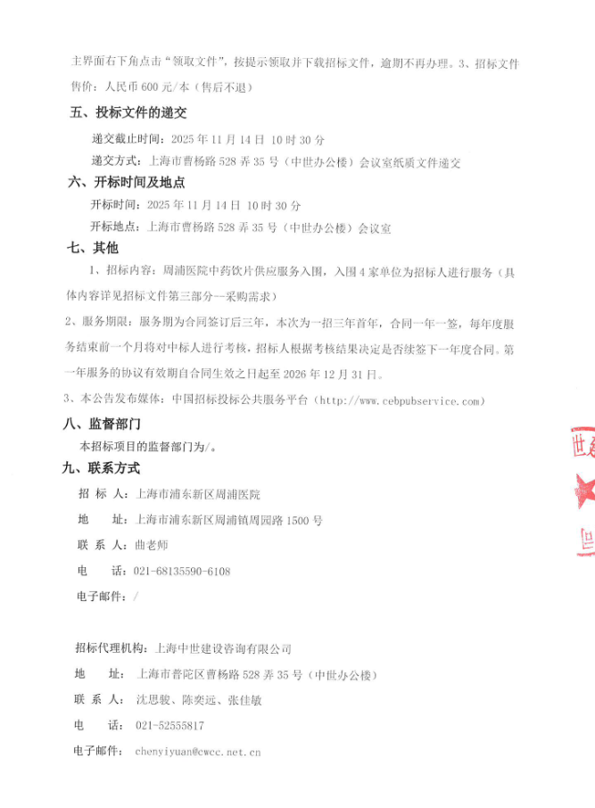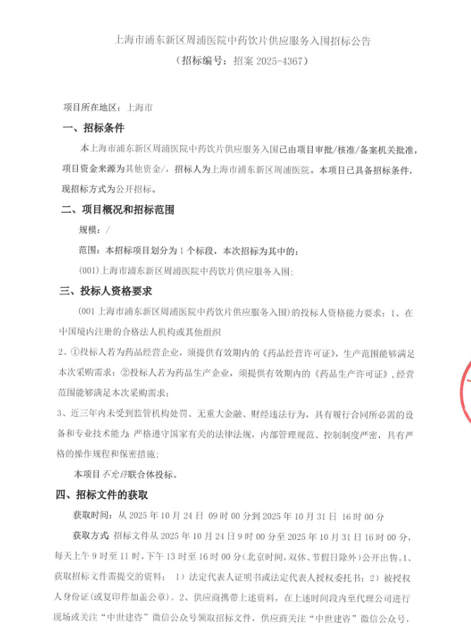 【上海市浦东新区周浦医院】上海市浦东新区周浦医院中药饮片供应服务入围招标公告