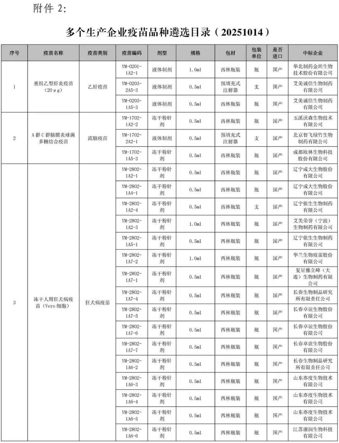 (二)在甘肃省公共资源交易平台公布的《2025年度非免疫规划疫苗阳光采购动态调整结果公示表》的疫苗品种目录内进行遴选。