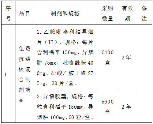 根据《上饶市医疗设备器械采购内控工作监督管理办法(试行)》的具体要求,现对上饶市疾病预防控制中心拟采购免费抗结核复合制剂药品进行公开询价。本次公开征询情况将作为采购人编制政府采购招标文件最高限价、主要技术指标及配置的参考依据,欢迎广大符合要求的生产企业及经营企业积极参与。现将有关事项公告如下: