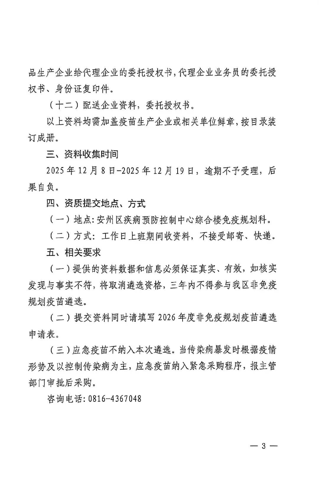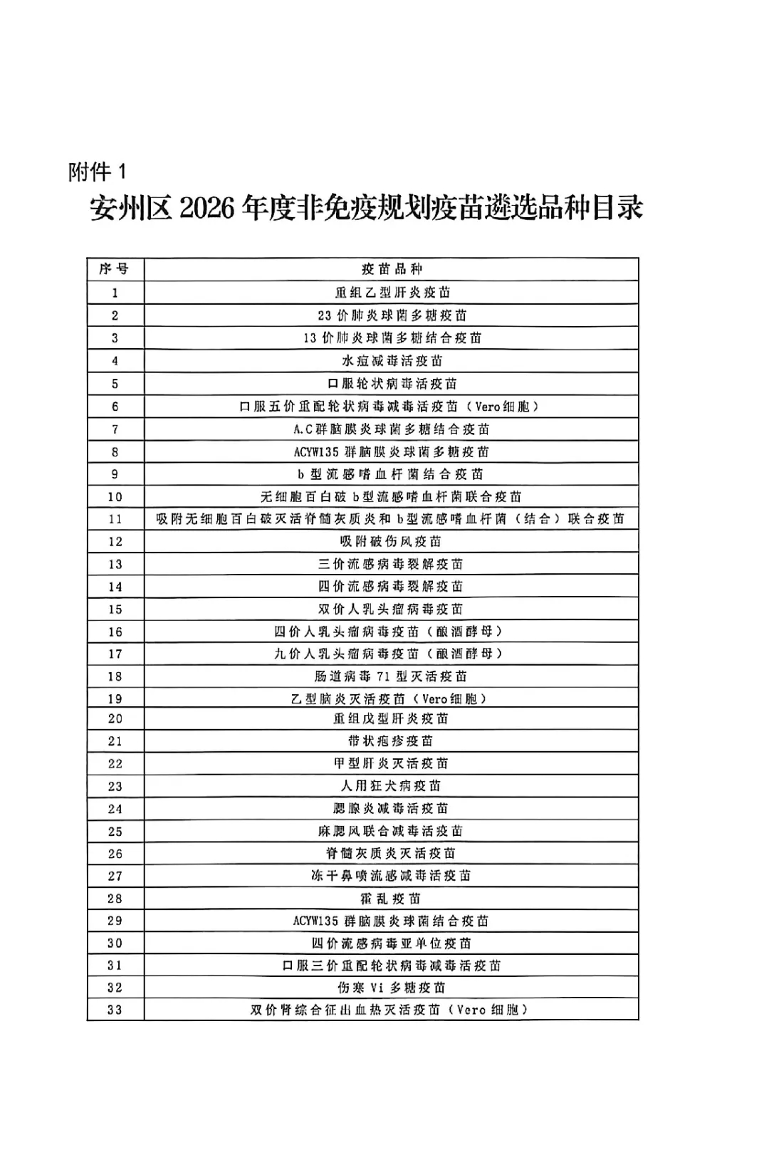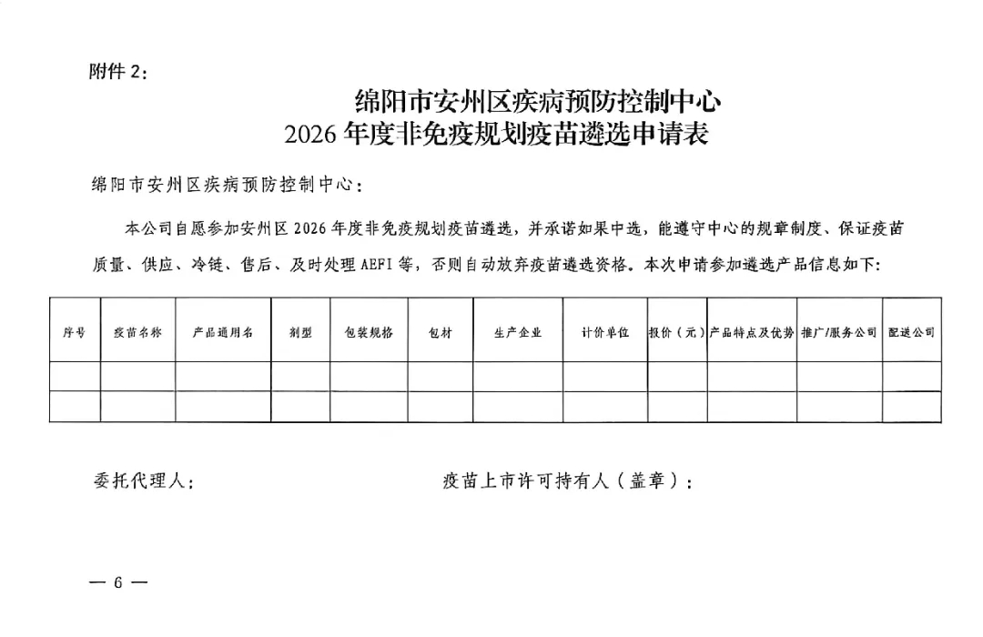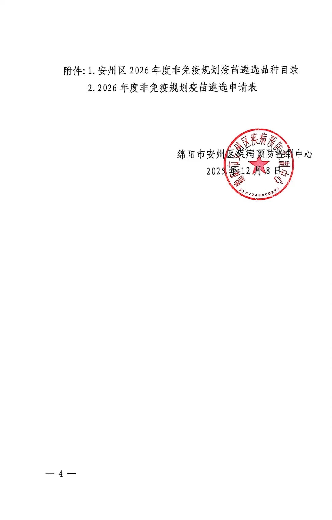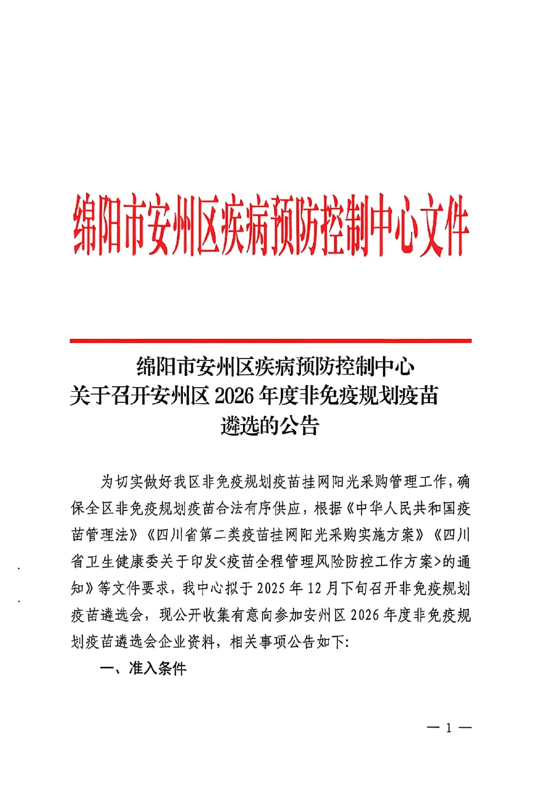 【绵阳】绵阳市安州区疾病预防控制中心关于召开安州区2026年度非免疫规划疫苗遴选的公告