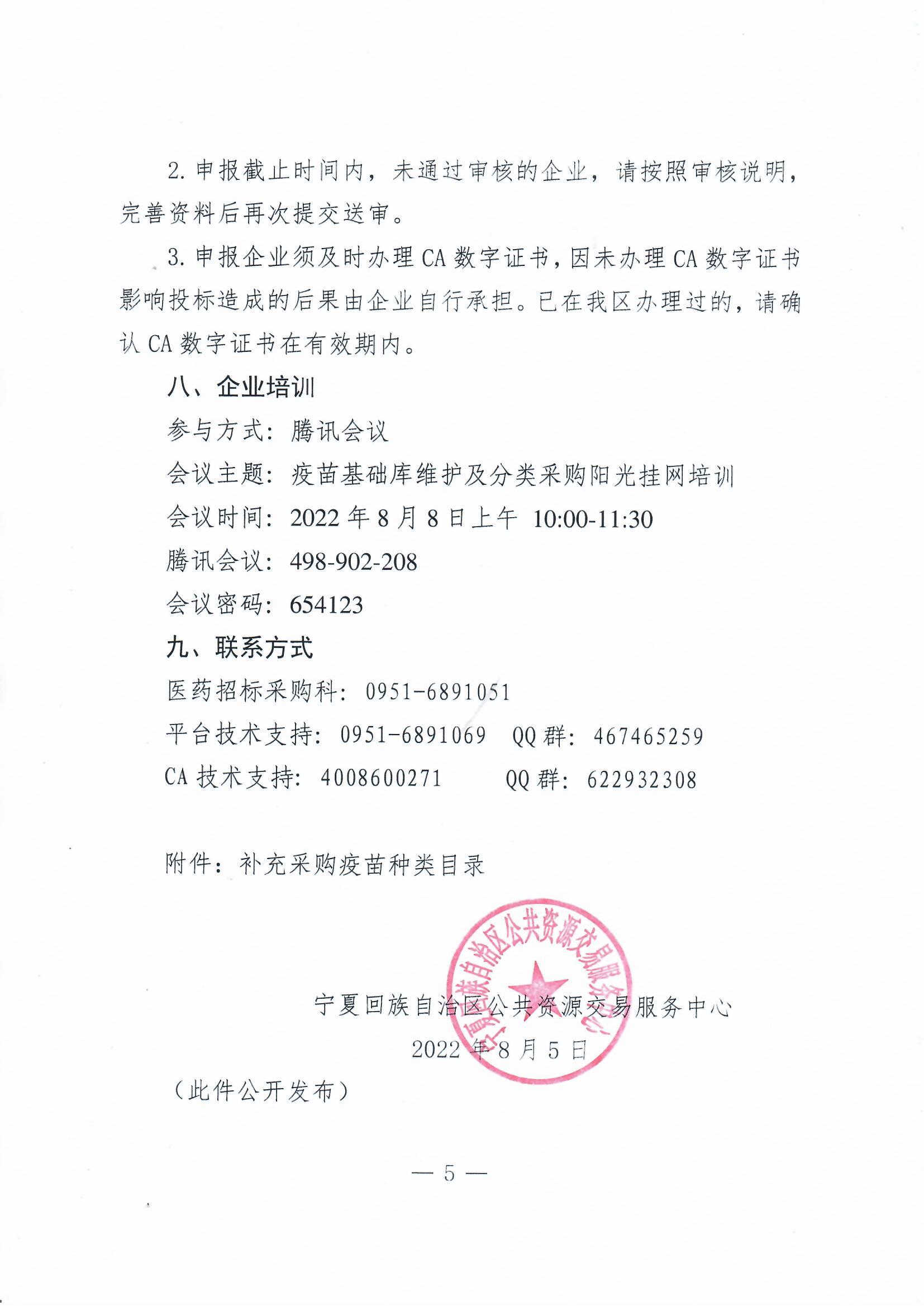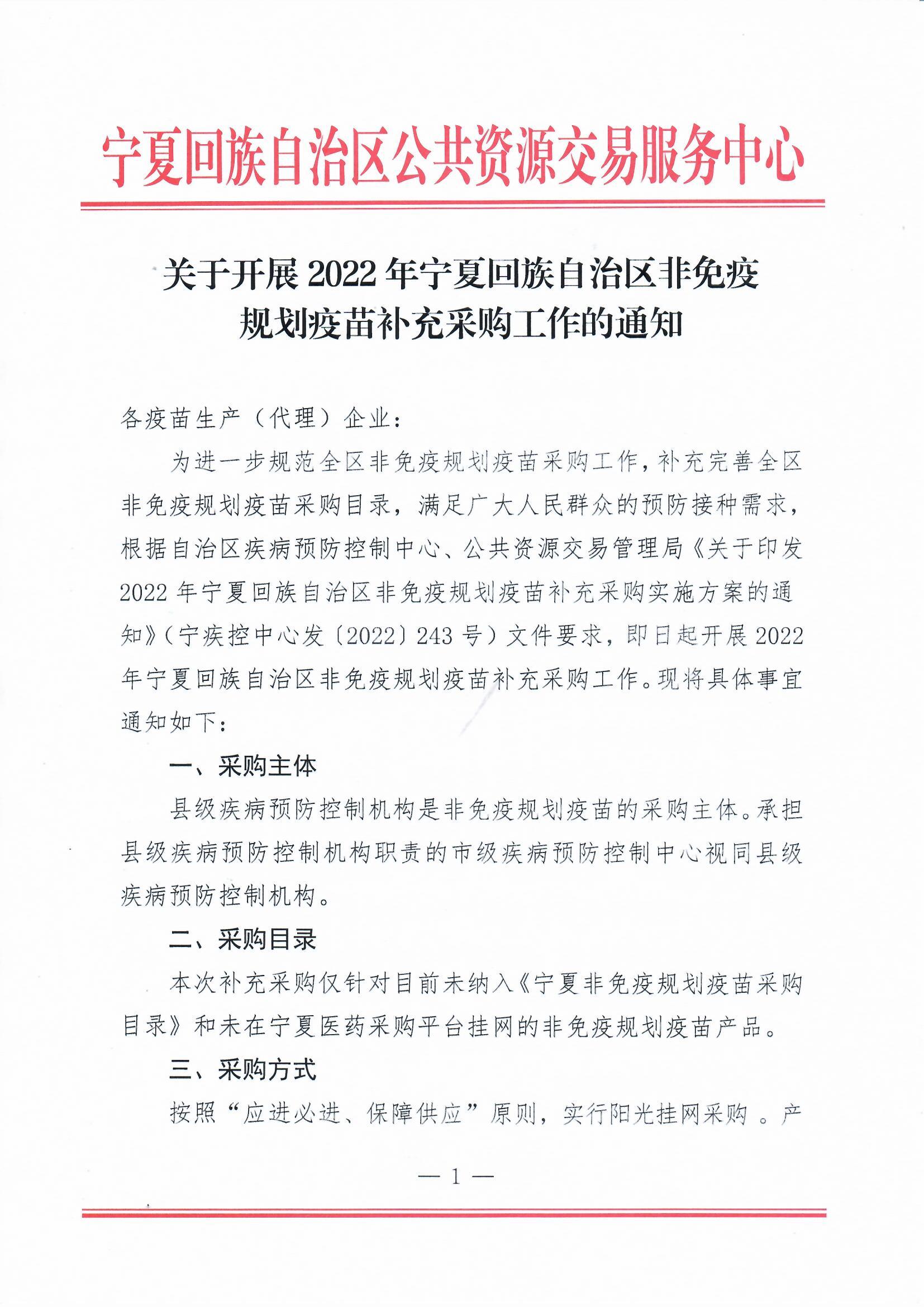 【宁夏】关于开展2022年宁夏回族自治区非免疫规划疫苗补充采购工作的通知