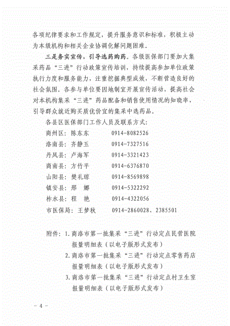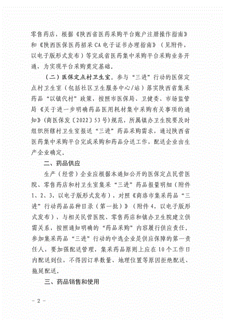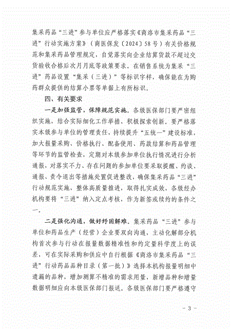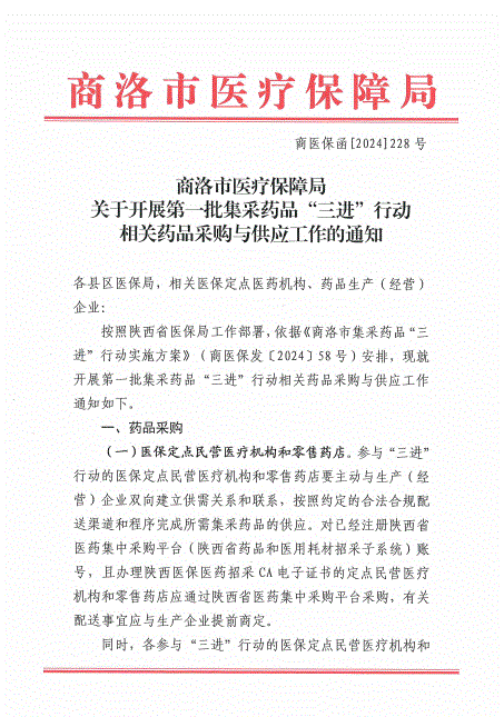 【商洛】陕西省商洛市医疗保障局关于开展第一批集采药品“三进”行动相关药品采购与供应工作的通知