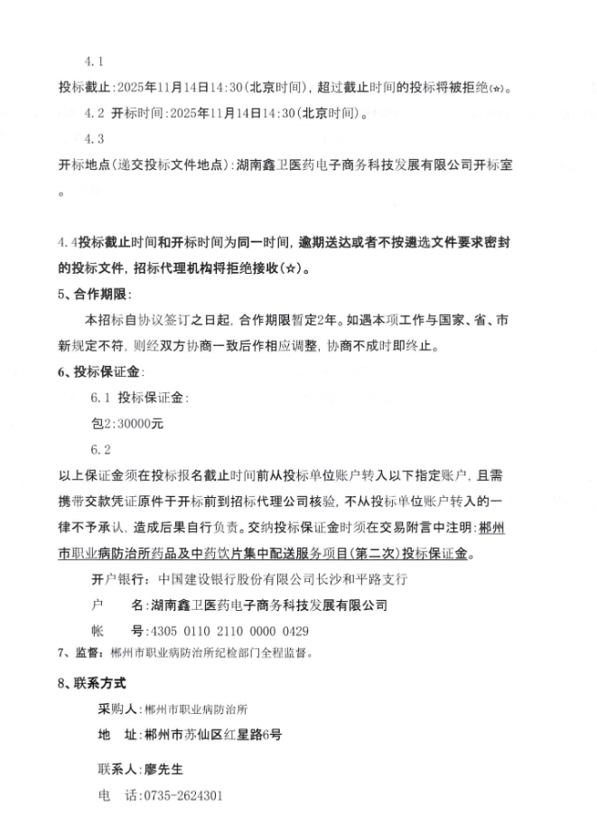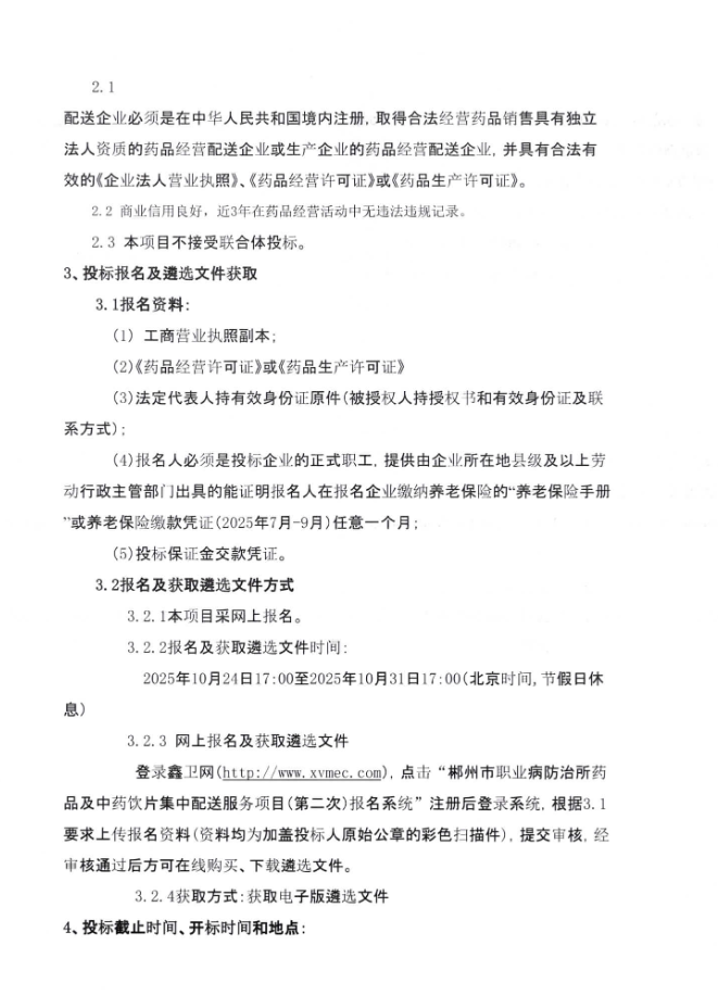 【郴州市职业病防治所】湖南省郴州市职业病防治所药品及中药饮片集中配送服务项目(第二次)遴选公告