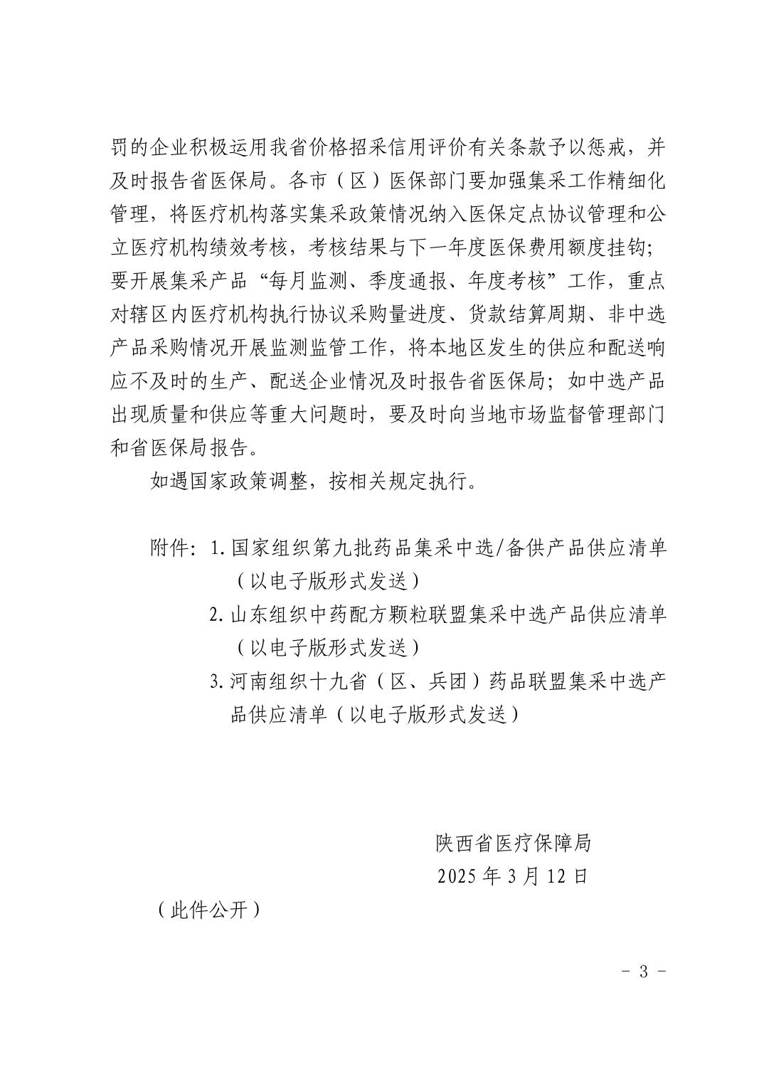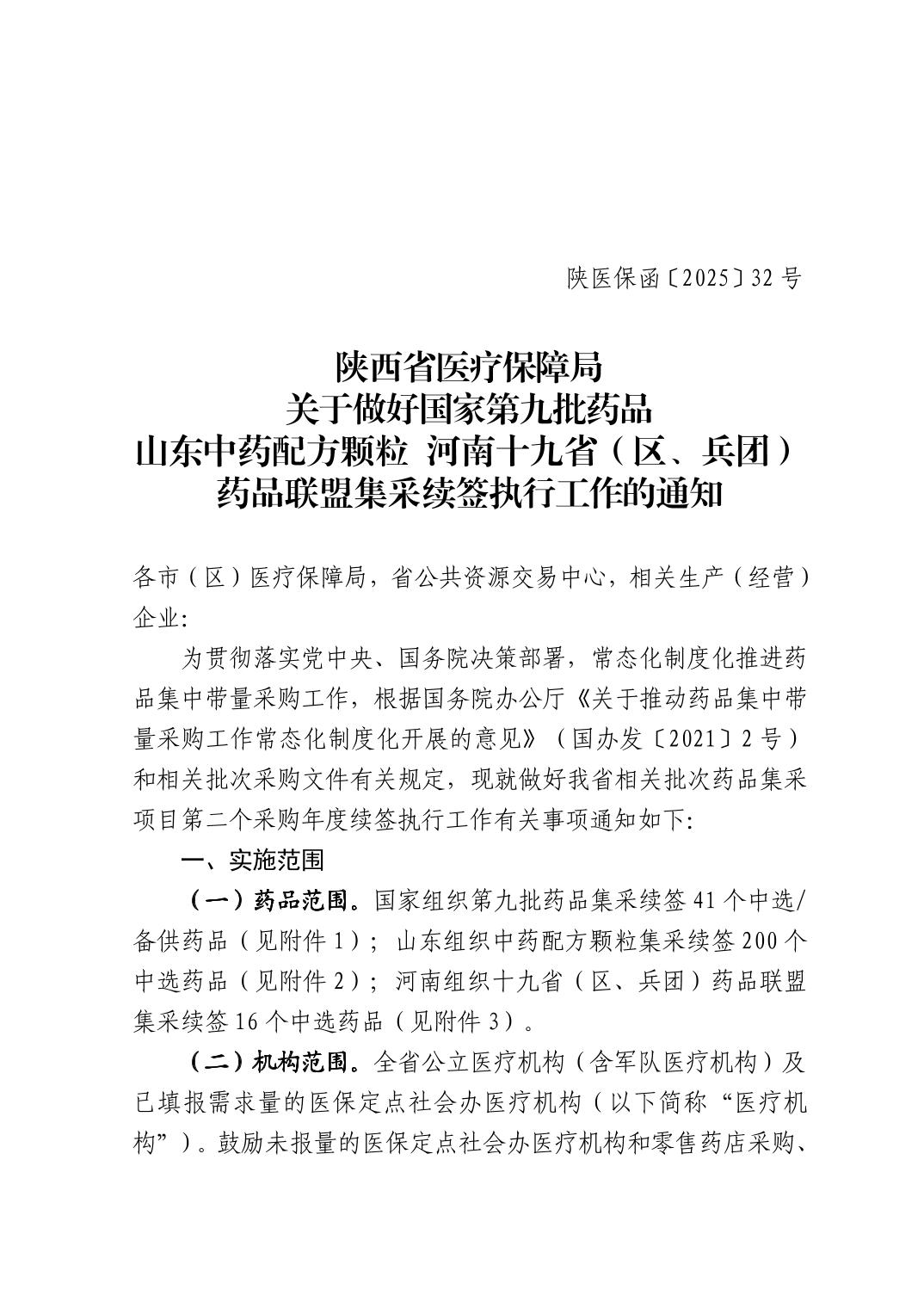 【陕西】陕西省医疗保障局关于做好国家第九批药品山东中药配方颗粒河南十九省(区、兵团)药品联盟集采续签执行工作的通知