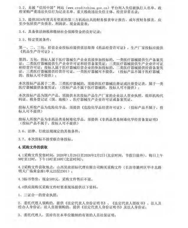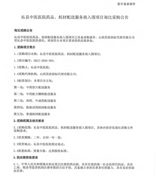 【长治市沁县中医医院】山西省长治市沁县中医医院药品、耗材配送服务商入围项目询比采购公告