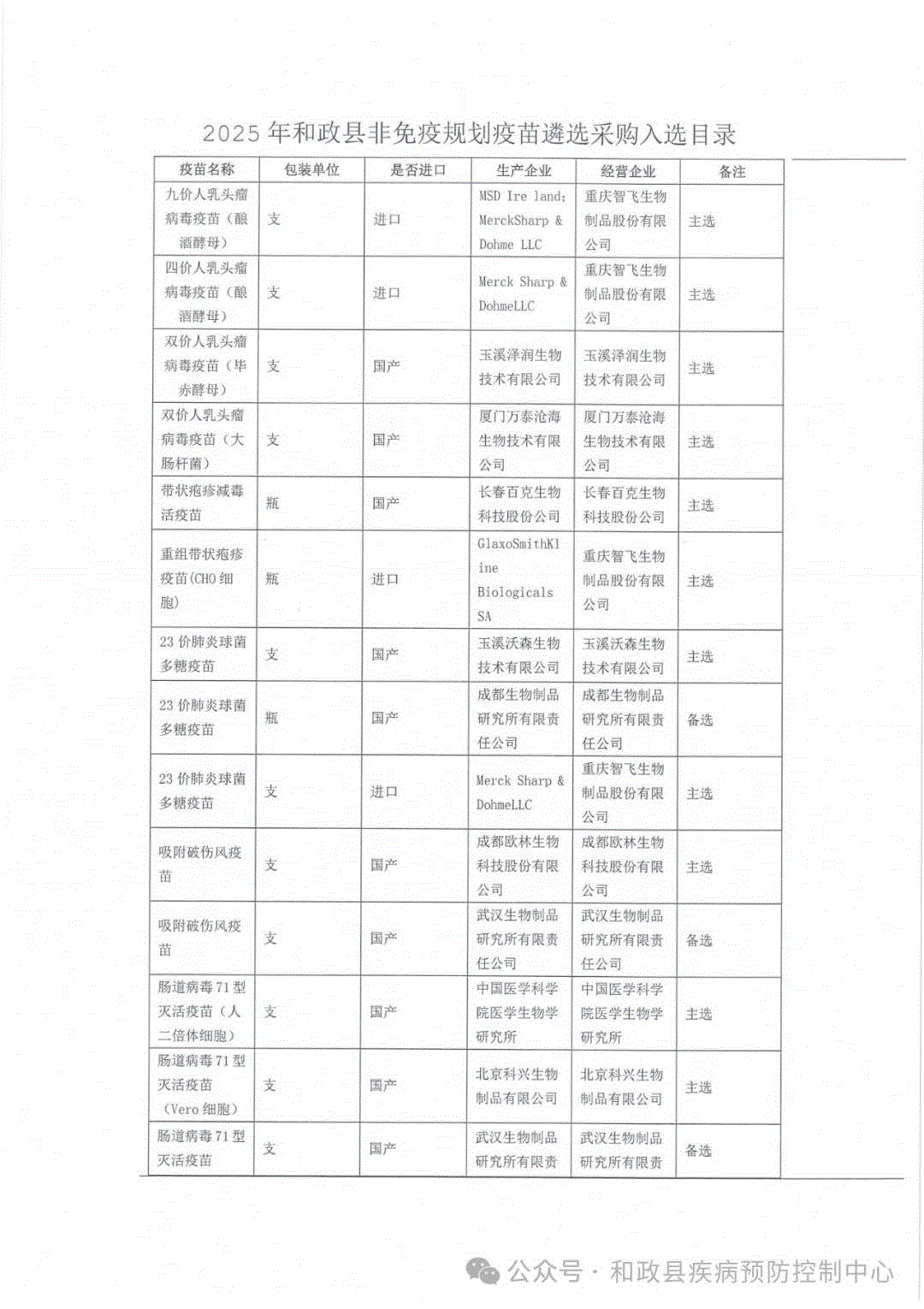 详见附件:《和政县2025年度非免疫规划疫苗遴选入选目录》。