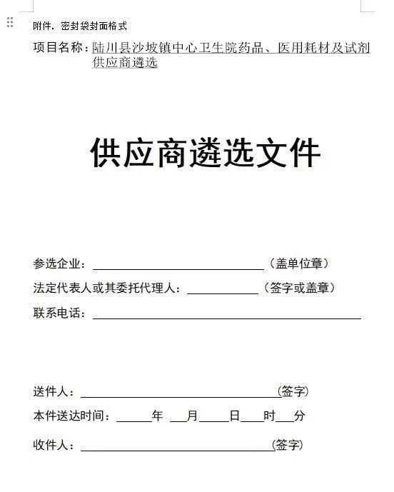 (一)项目内容:陆川县沙坡镇中心卫生院药品、医用耗材供应商遴选项目。
