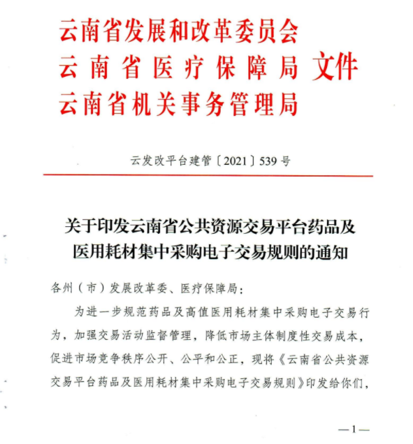 【楚雄】楚雄彝族自治州转发关于印发云南省公共资源交易平台药品及医用耗材集中采购电子交易规则的通知