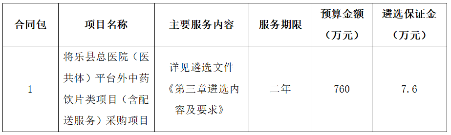 项目名称:将乐县总医院(医共体)平台外中药饮片类项目(含配送服务)采购项目