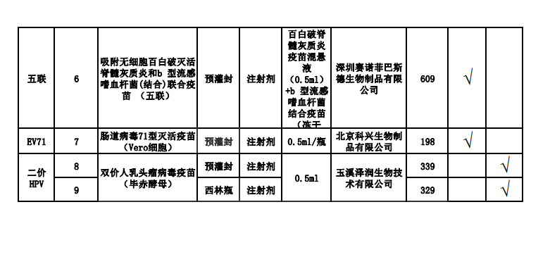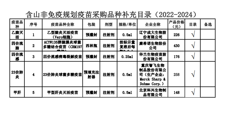 含山非免疫规划疫苗釆购品种补充目录(2022-2024)