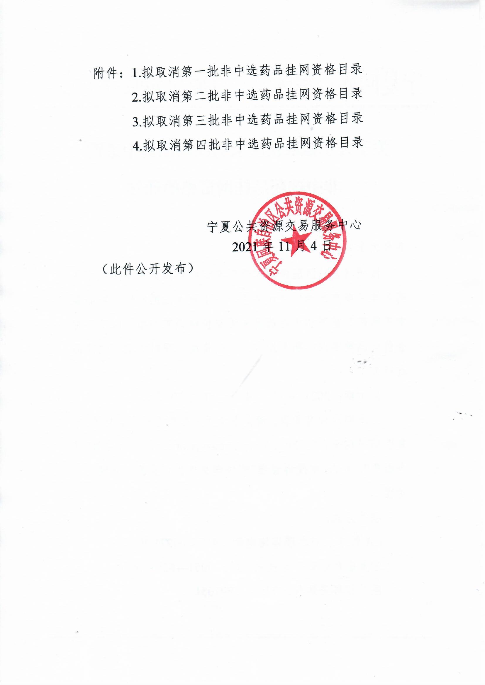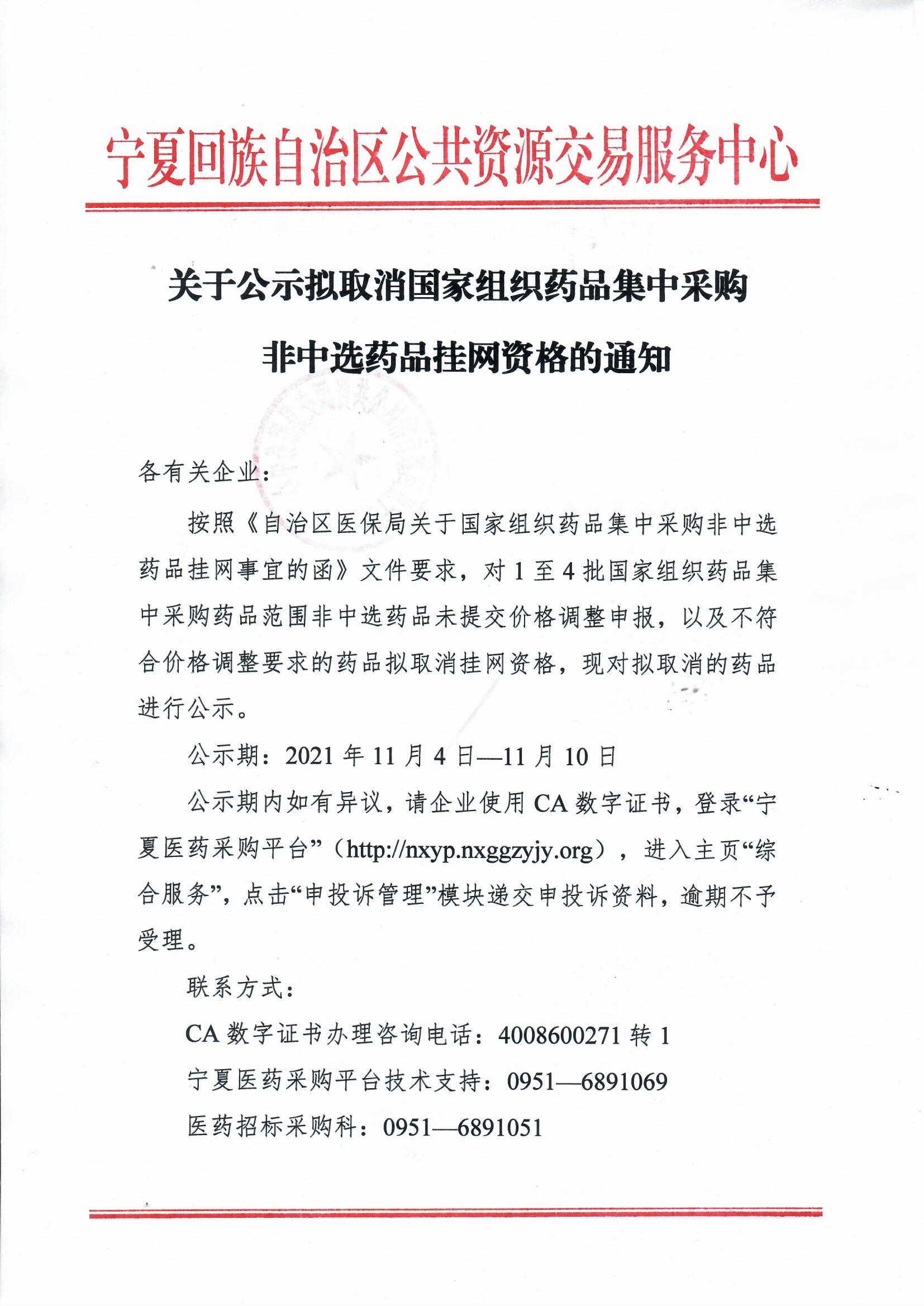 【宁夏】2021年宁夏自治区关于公示拟取消国家组织药品集中采购非中选药品挂网资格的通知