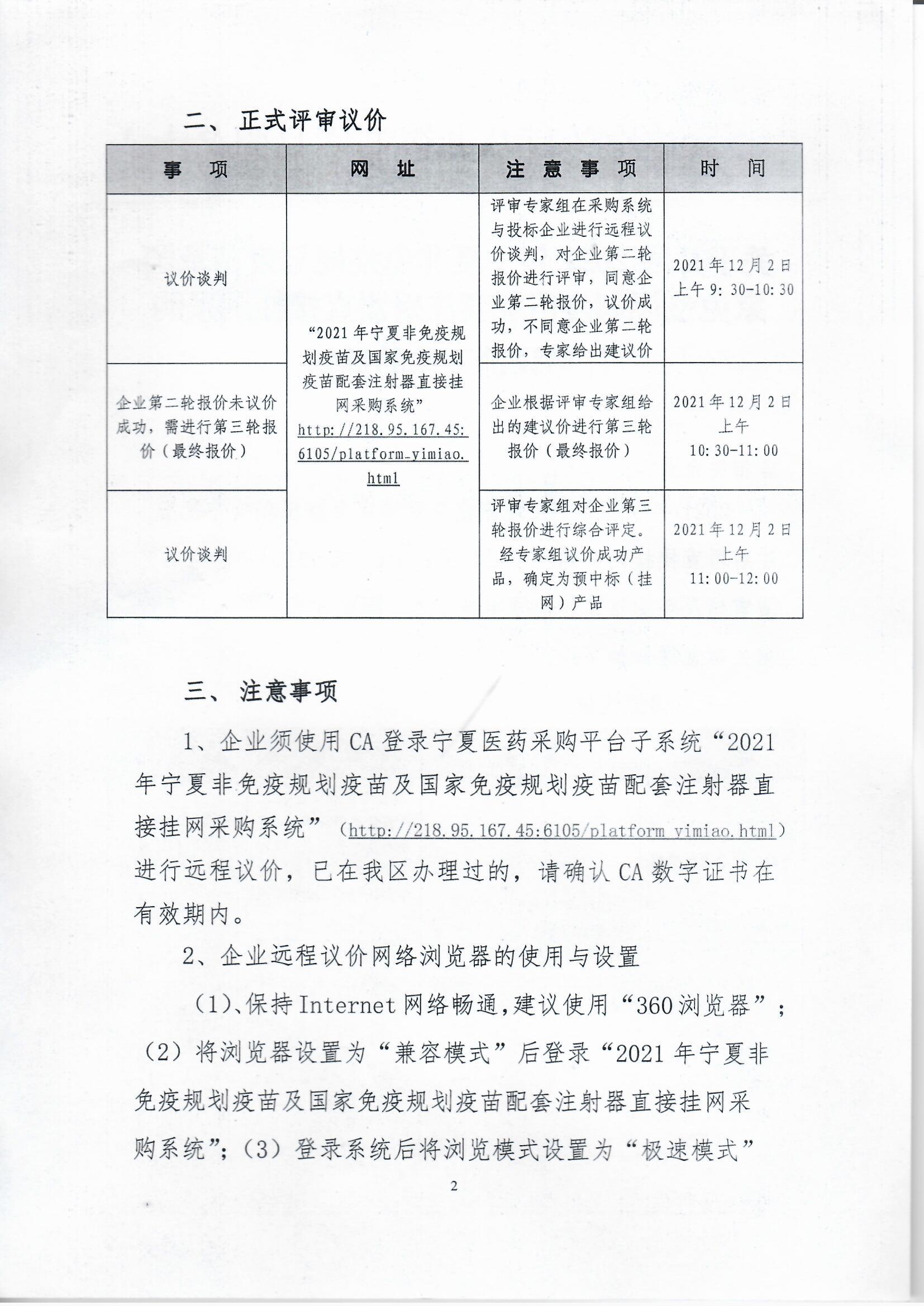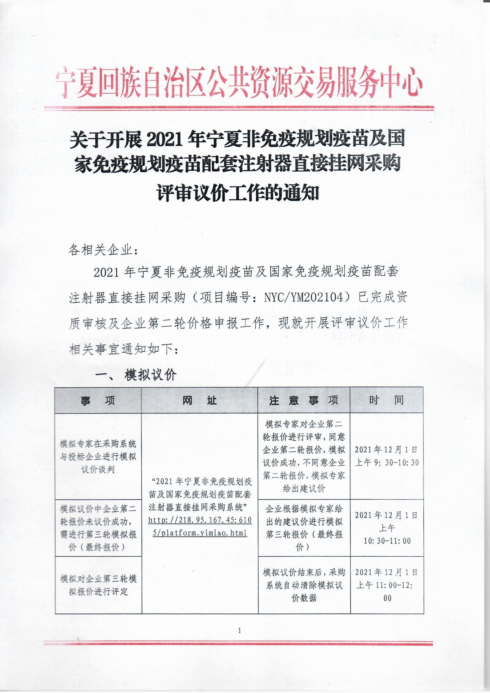 【宁夏】关于开展2021年宁夏非免疫规划疫苗及国家免疫规划疫苗配套注射器直接挂网采购评审议价工作的通知