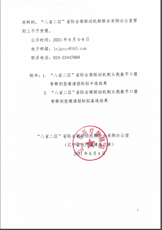 【内蒙】2021年内蒙古自治区转发关于公布 ”八省二区” 省际会商联动机制头抱氨节口服常释剂型邀请招标拟中选、 备选结果的通知