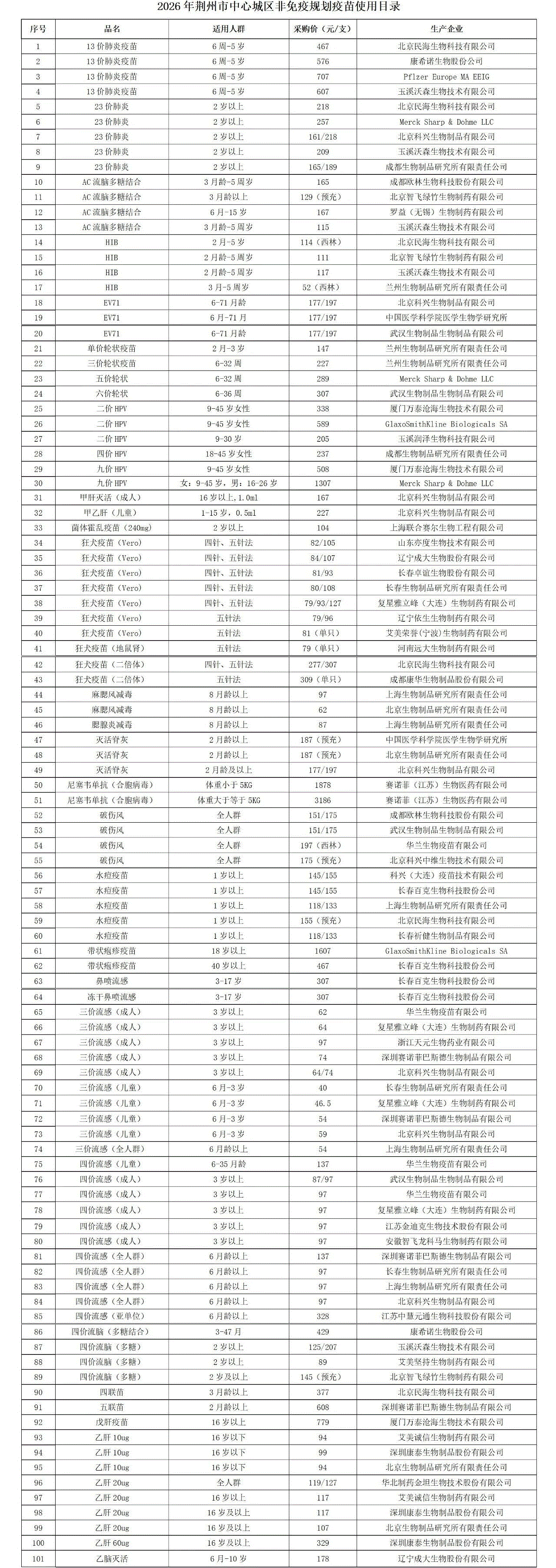 为深入贯彻落实《中华人民共和国疫苗管理法》,进一步规范荆州市中心城区非免疫规划疫苗的管理,确保预防接种工作安全、有序开展,同时强化廉政风险防控,加强监督管理,保障疫苗采购工作公平、公开、合理、有序进行,依据《荆州城区非免疫规划疫苗采购实施方案》,市疾控中心于2026年2月6日组织召开了荆州城区2026年非免疫规划疫苗使用目录遴选会议。经荆州市中心城区非免疫规划疫苗采购委员会15位成员现场遴选,形成了《2026年荆州市中心城区非免疫规划疫苗使用目录》,现予以公示(详见附件)。