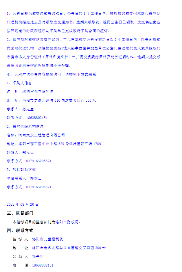 【洛阳市儿童福利院】河南省洛阳市儿童福利院药品采购成交结果公告