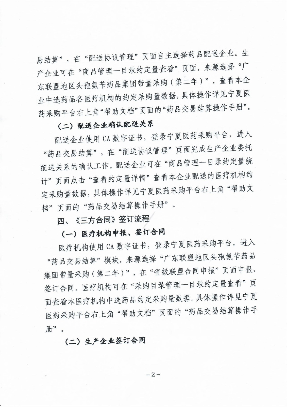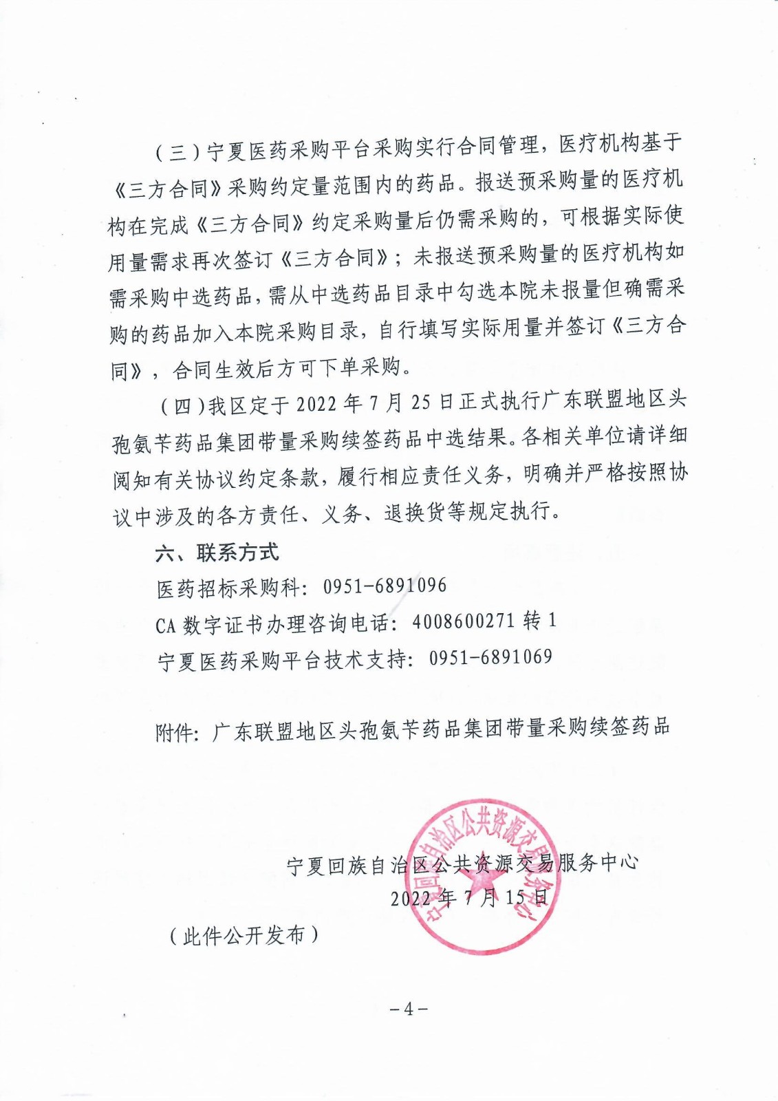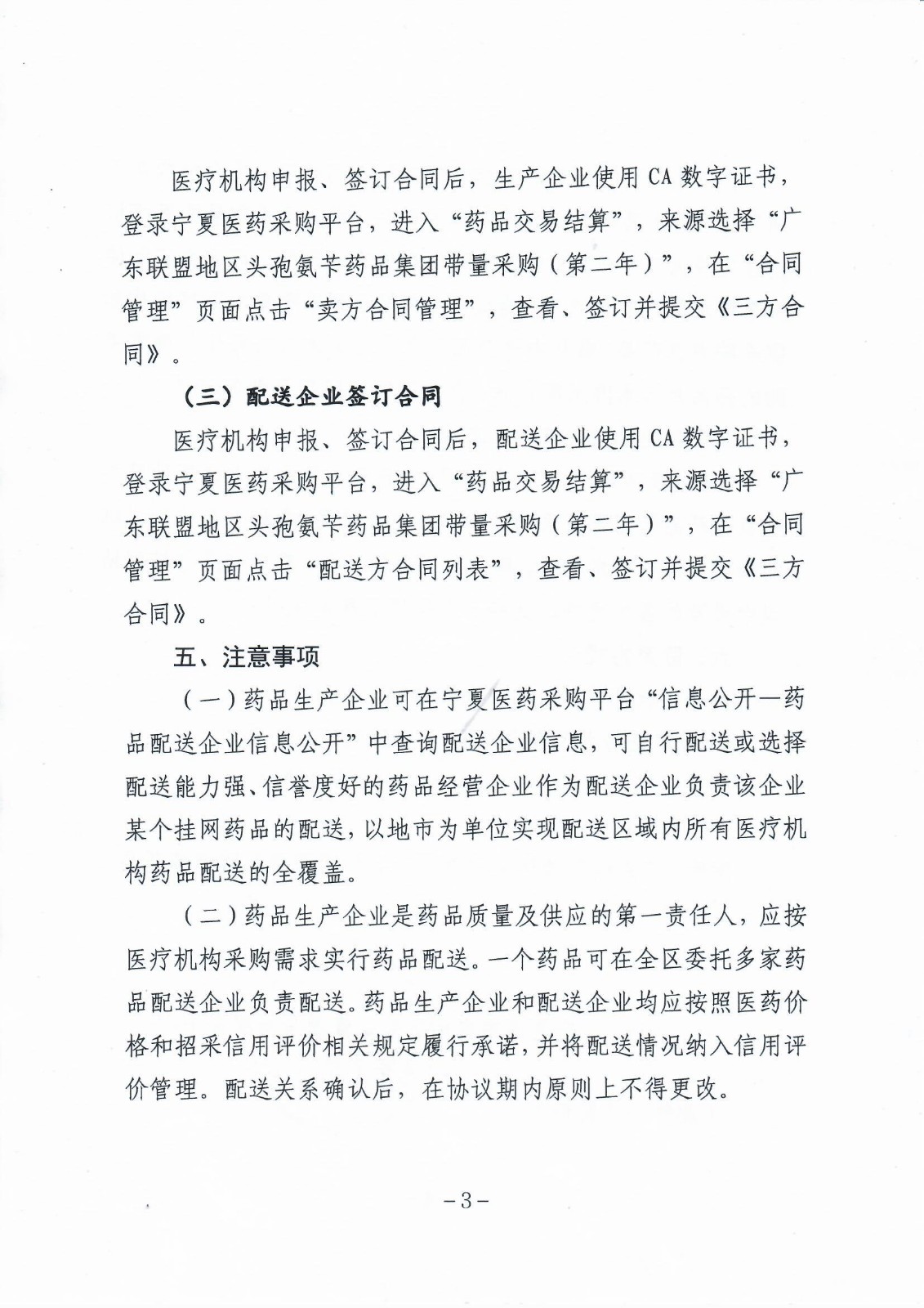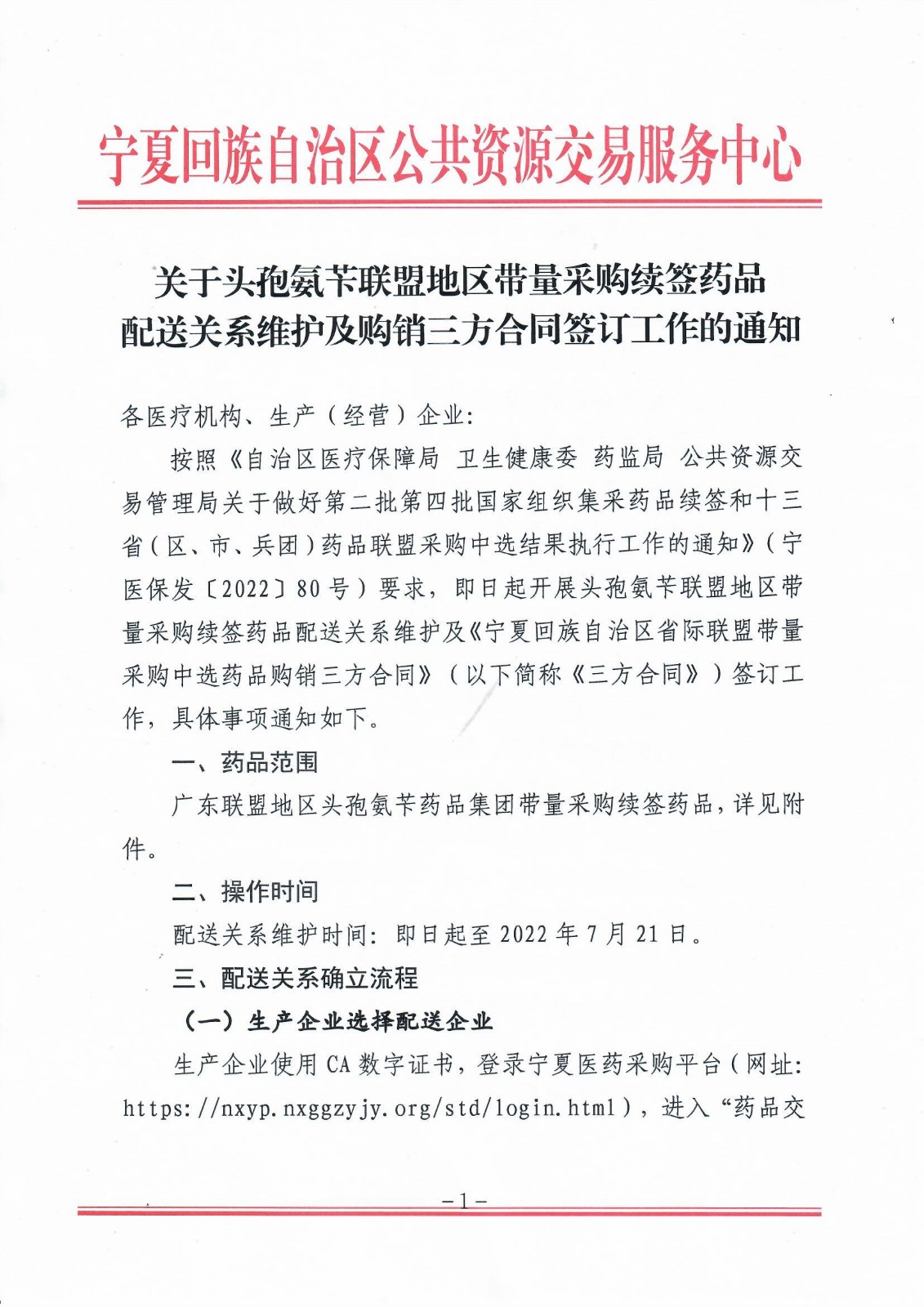 【宁夏】宁夏回族自治区关于头孢氨苄联盟地区带量采购续签药品配送关系维护及购销三方合同签订工作的通知