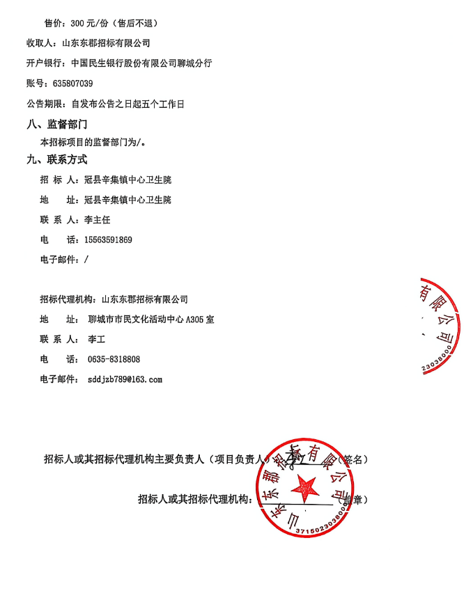 所属项目:山东省聊城市冠县辛集镇中心卫生院