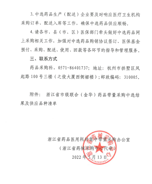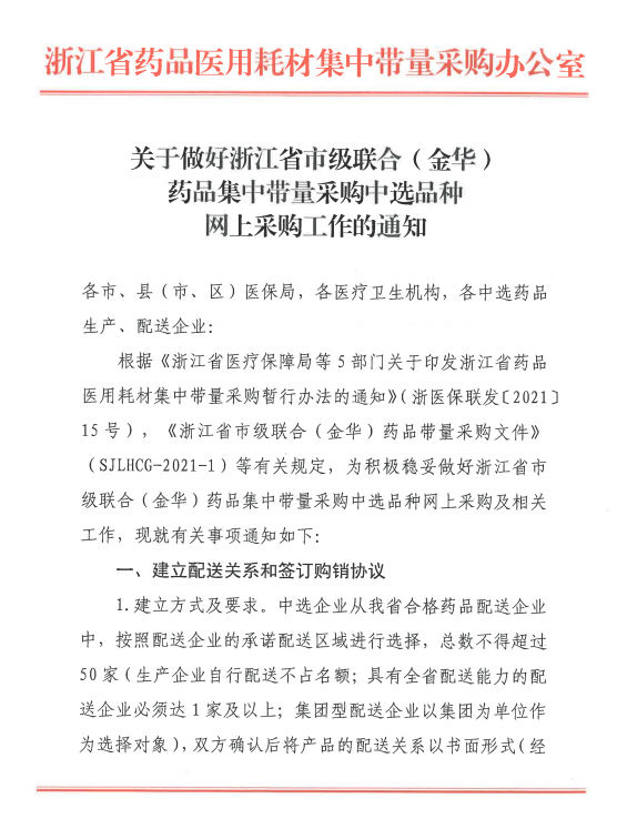 【宁波】关于做好浙江省(金华)药品集中带量采购中选品种网上采购工作的通知