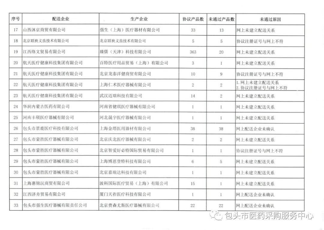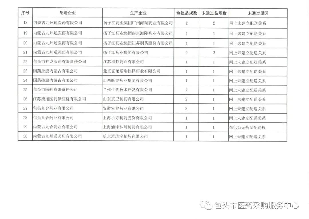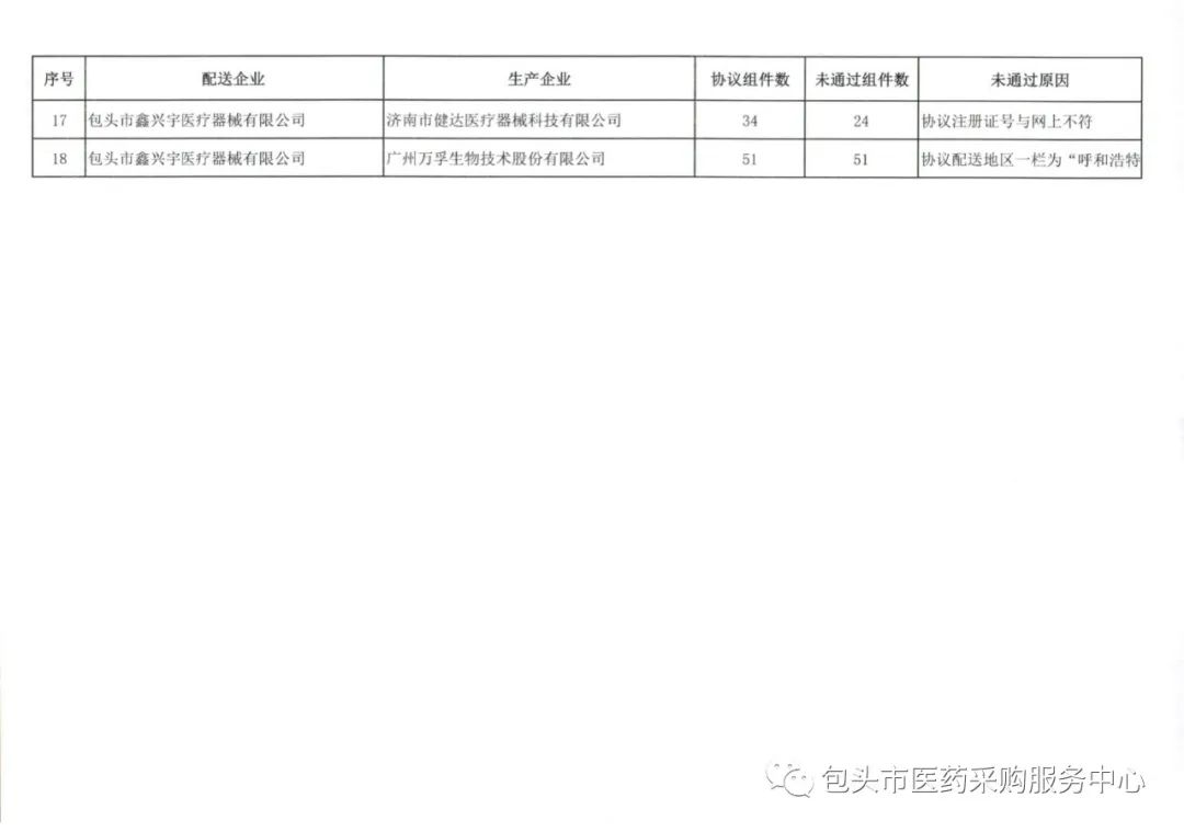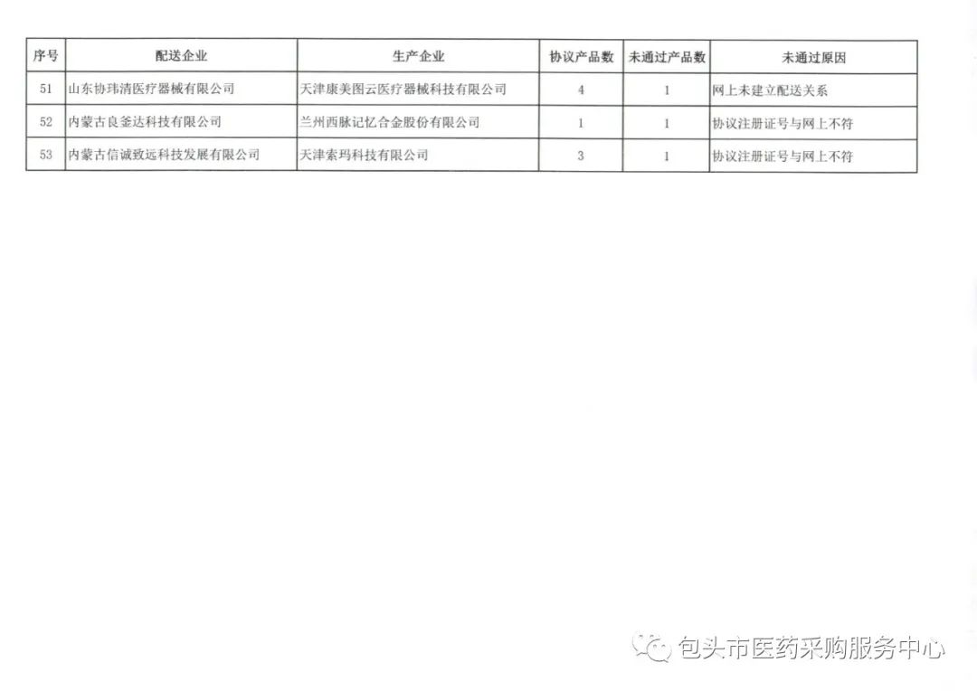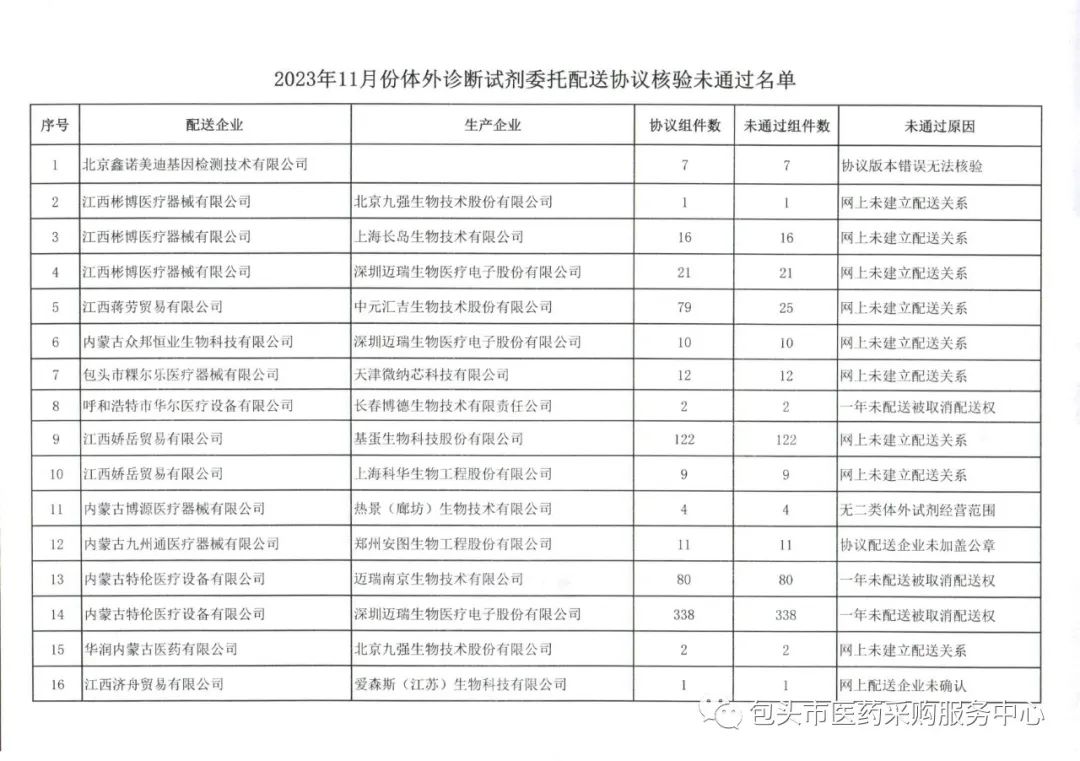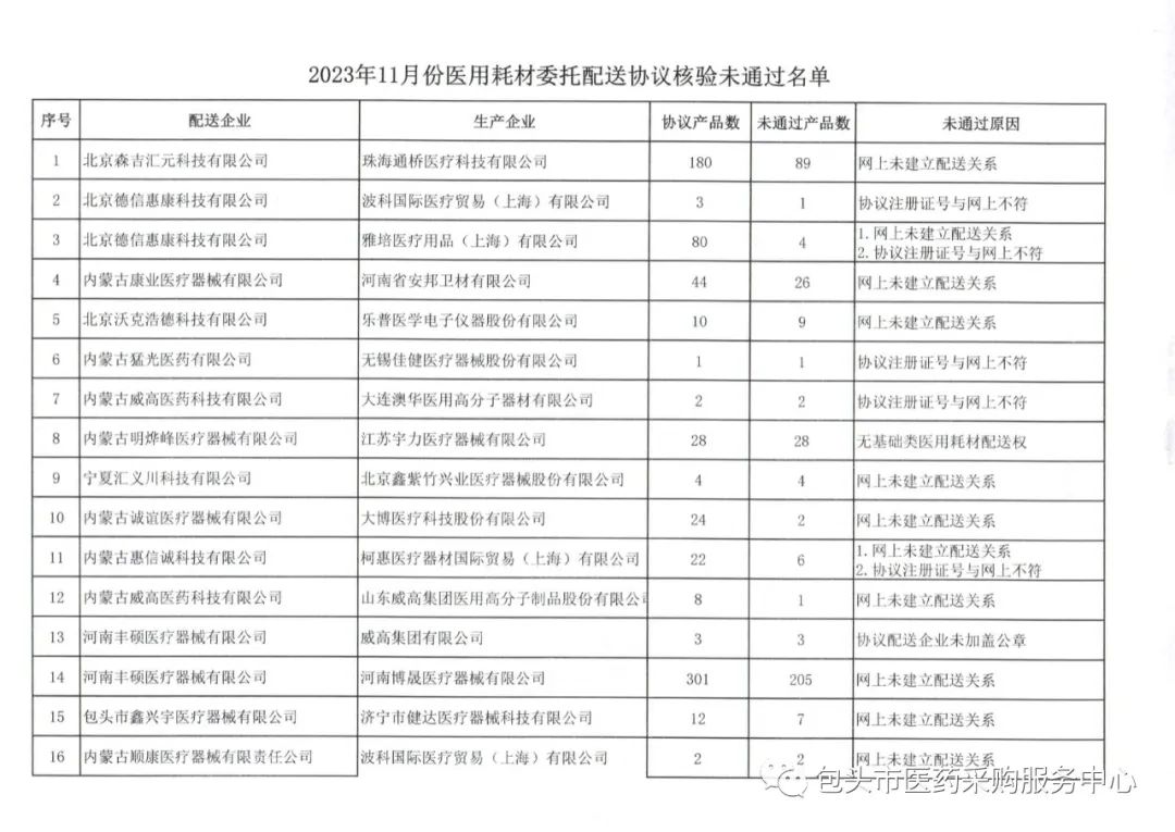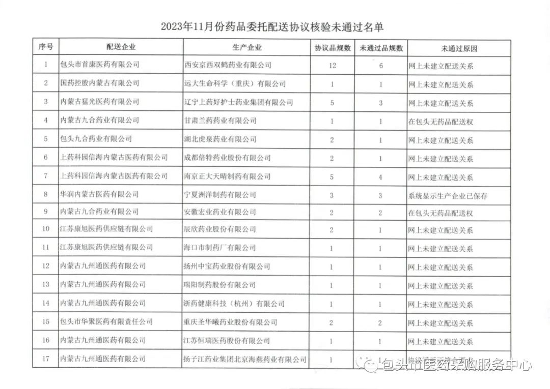 【包头】2023年11月份委托配送协议核验未通过名单