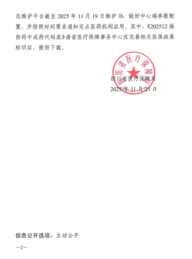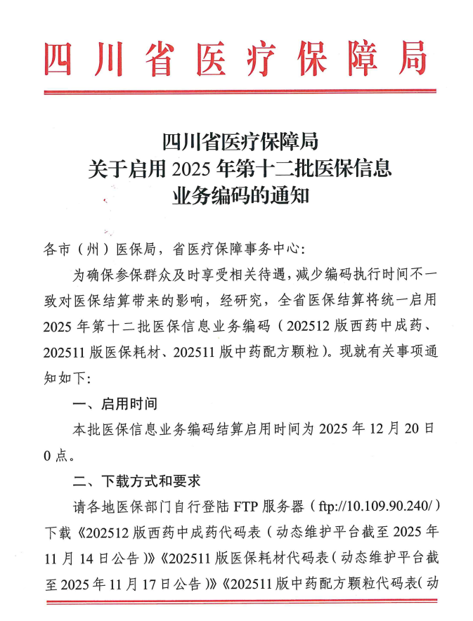 【绵阳】关于启用2025年第十二批医保信息业务编码的通知