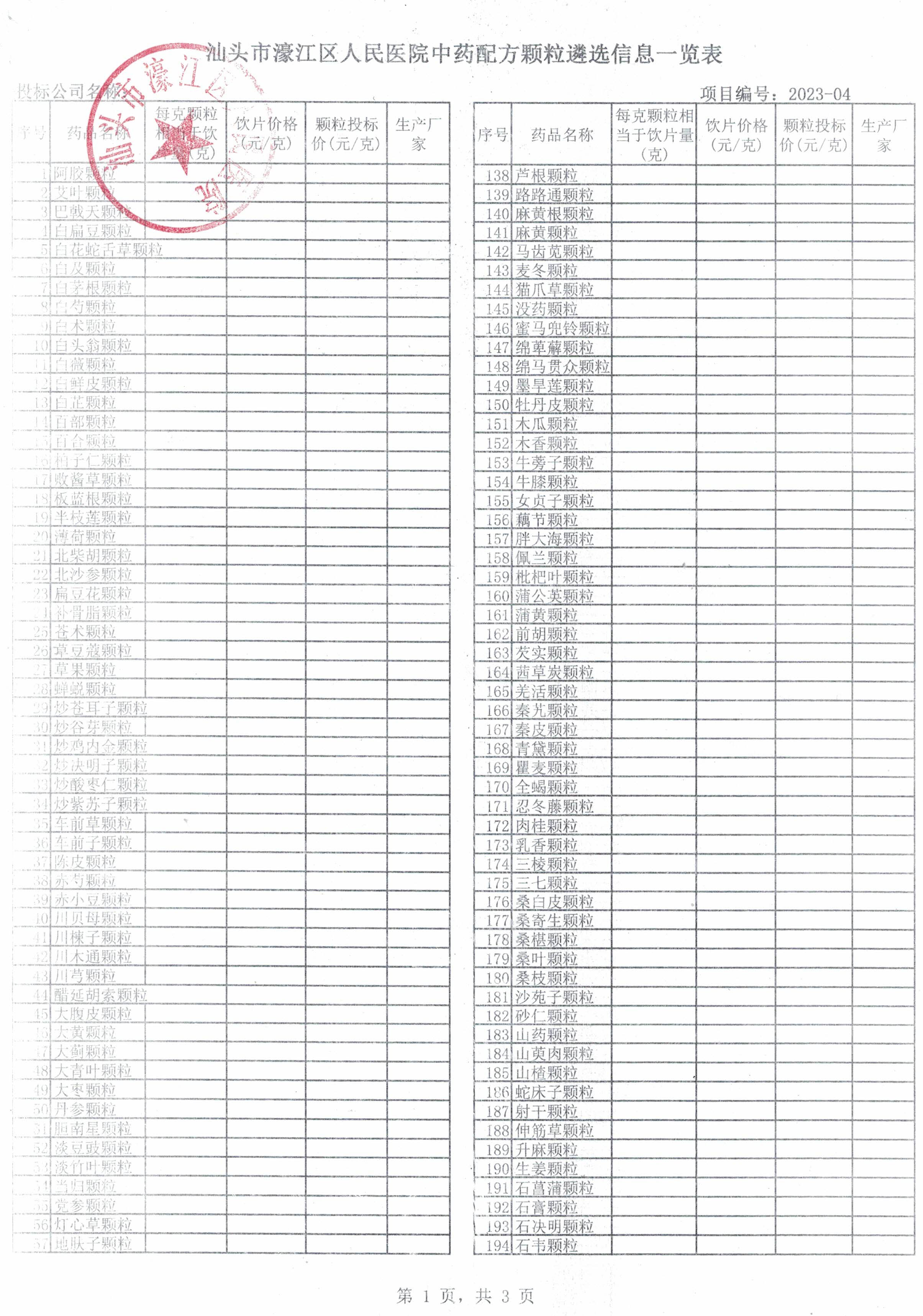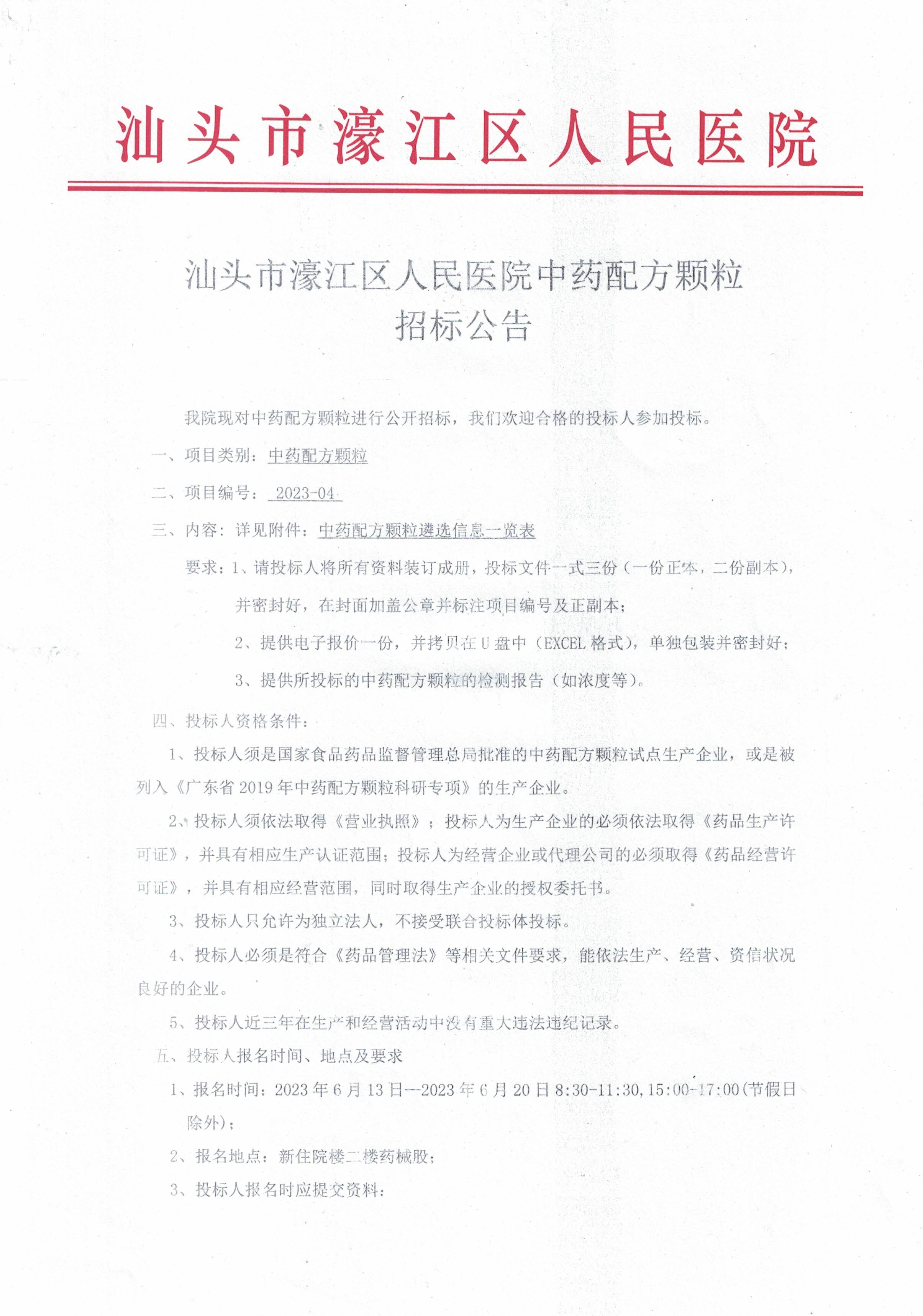 【汕头市濠江区人民医院】广东省汕头市濠江区人民医院中药配方颗粒招标公告