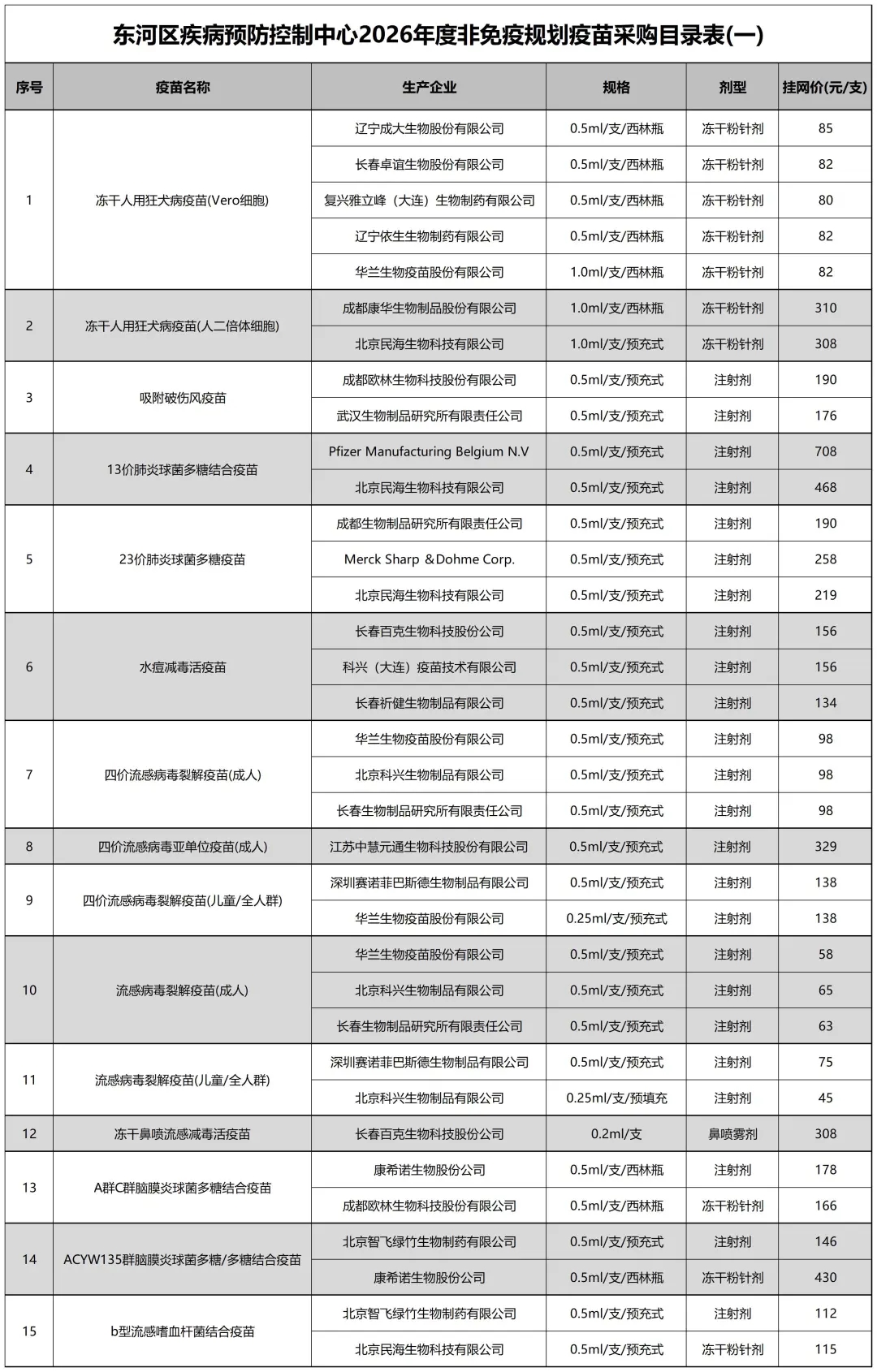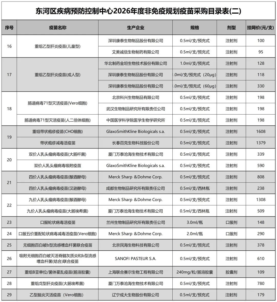 【包头】东河区疾病预防控制中心关于我区2026年度非免疫规划疫苗采购类型目录的公告