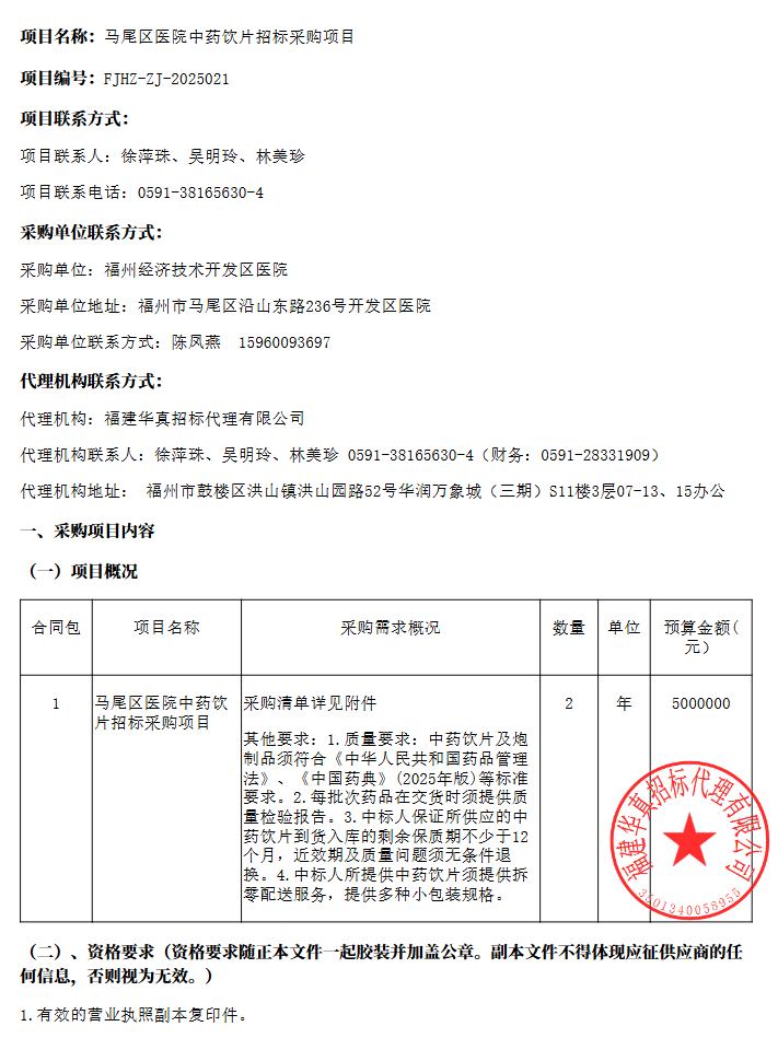 【福州市马尾区医院】福建省福州市马尾区医院中药饮片招标采购项目方案征集公告