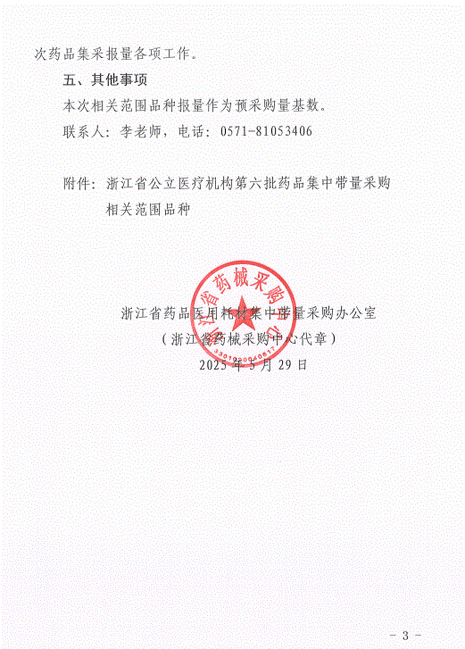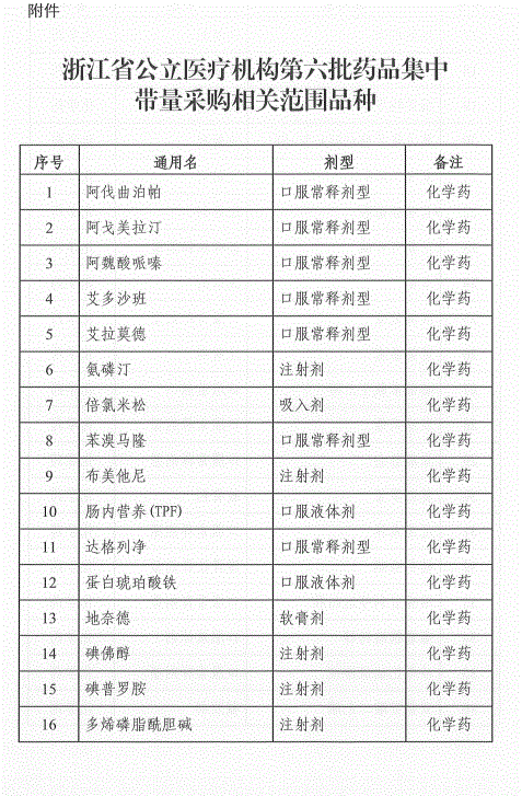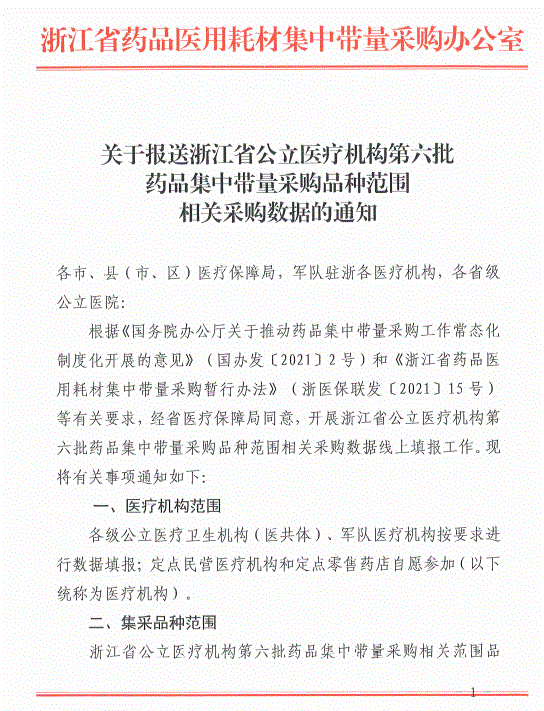 【浙江】关于报送浙江省公立医疗机构第六批药品集中带量采购品种范围相关采购数据的通知