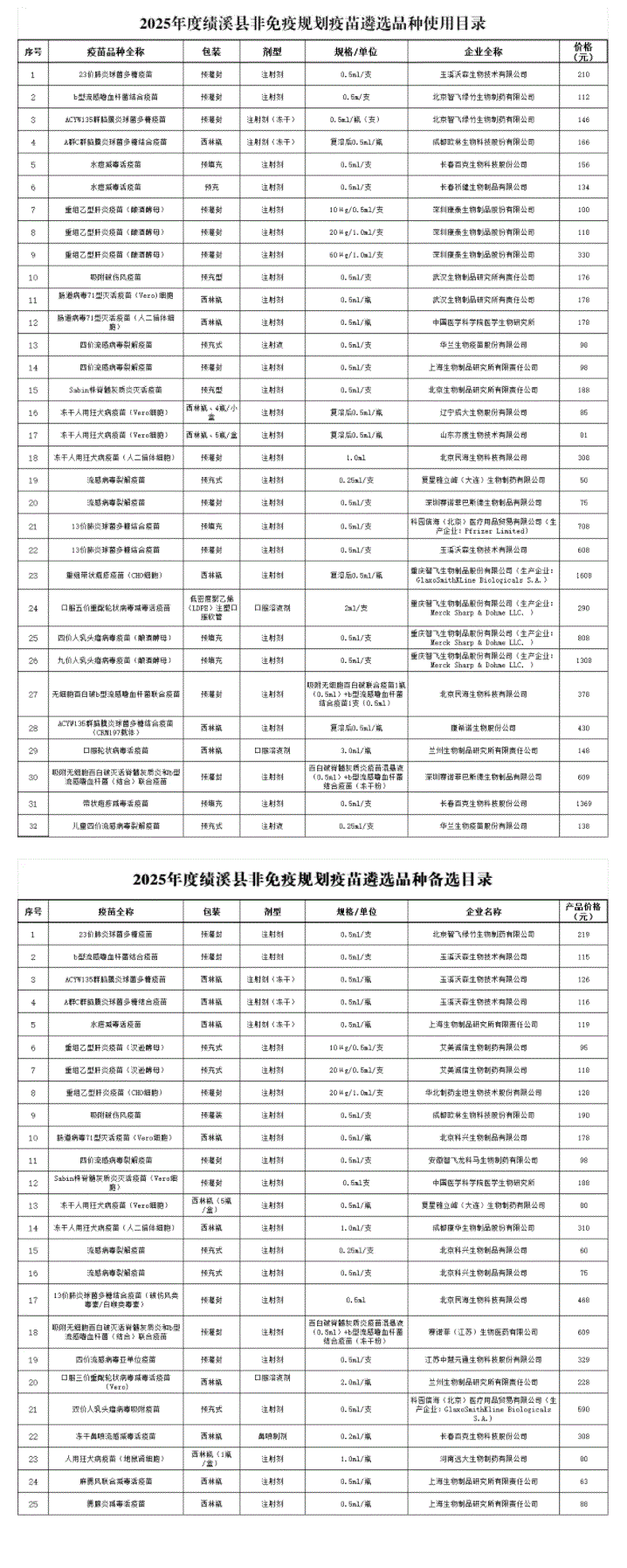【宣城】2025年度绩溪县非免疫规划疫苗遴选结果公示