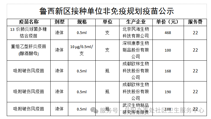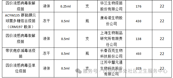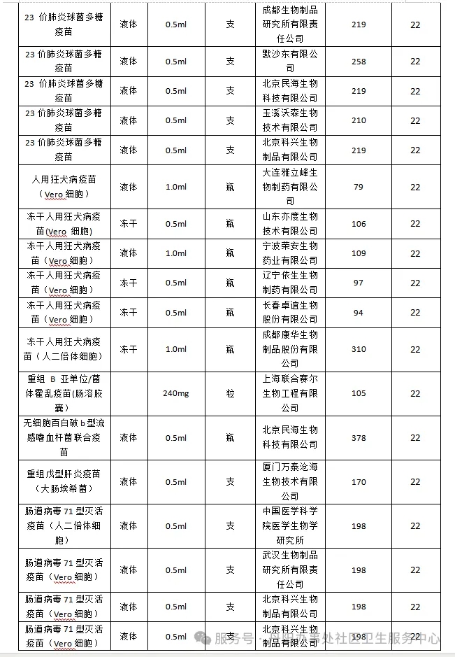 根据山东省药械集中采购平台中的疫苗种类、价格,及山东省发展和改革委员会 山东省财政厅联合下发的《关于非免疫规划疫苗预防接种服务收费标准的通知》(鲁发改成本[2021]285号)规定,菏泽市非免疫规划疫苗接种执行疫苗采购价加接种服务费(22元/剂次)的收费标准,现公示如下: