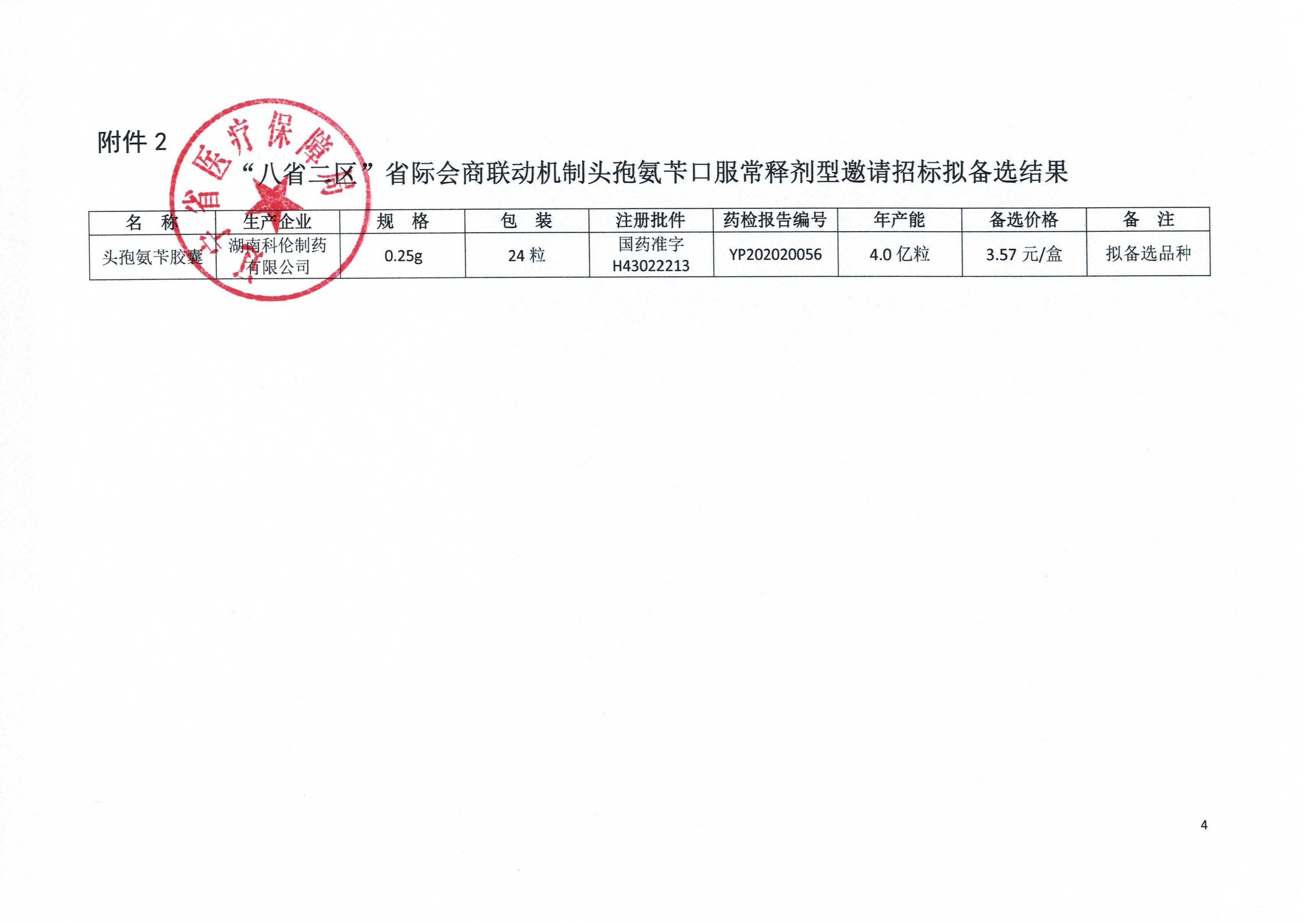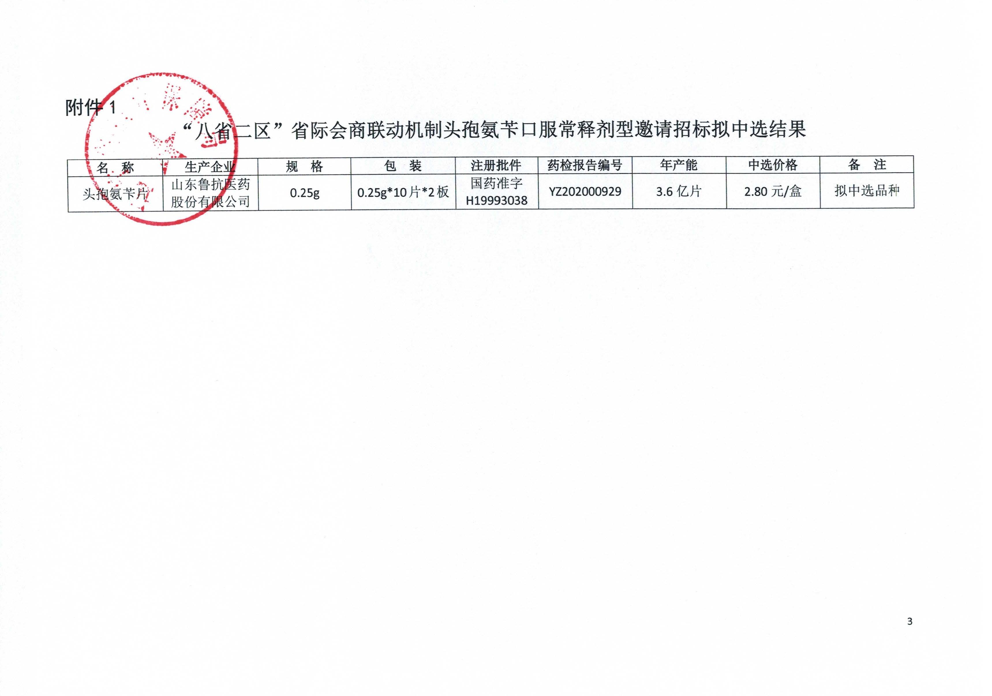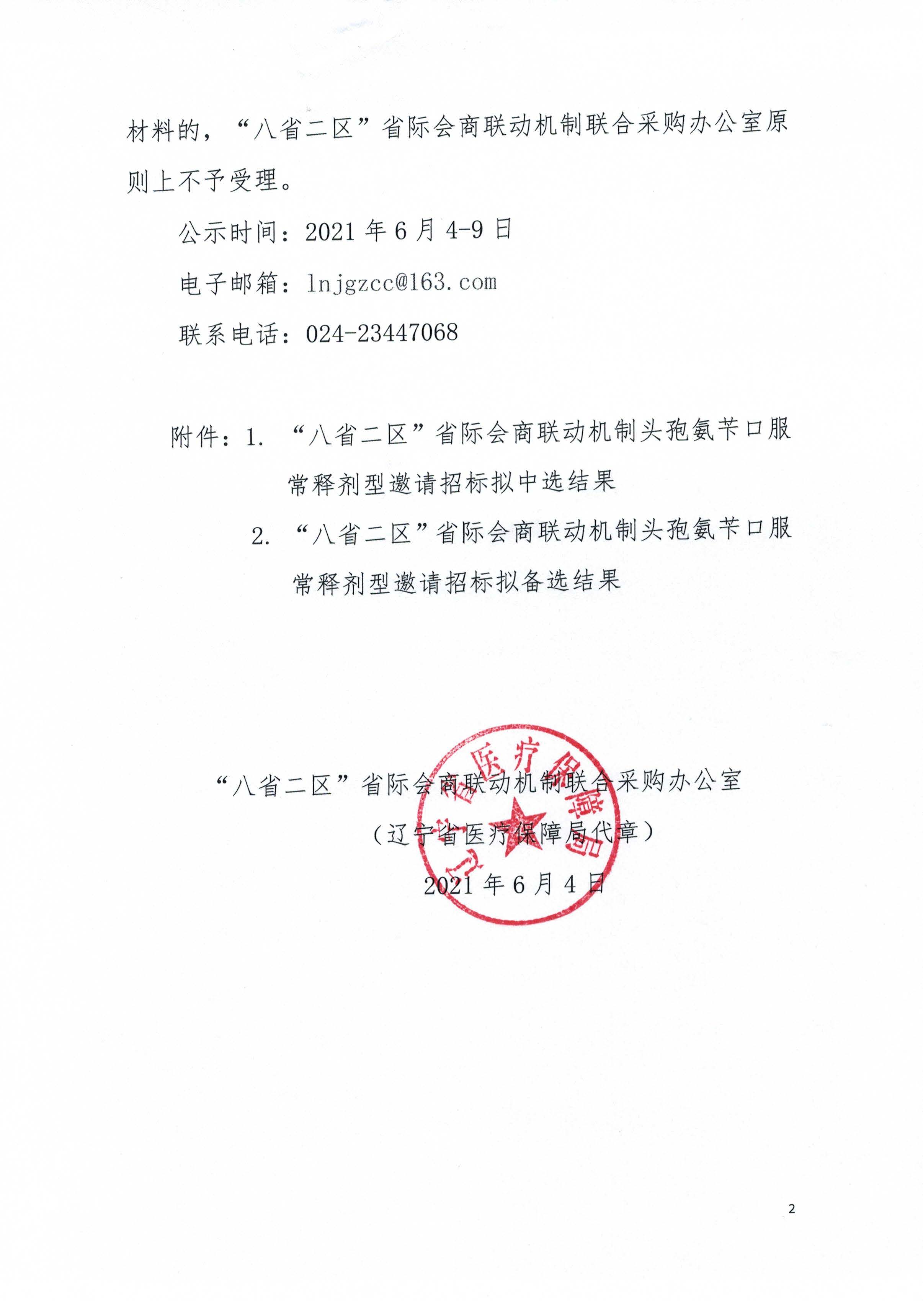 【辽宁】2021年辽宁省关于公布“八省二区”省际会商联动机制头孢氨苄口服常释剂型邀请招标拟中选、备选结果的通知