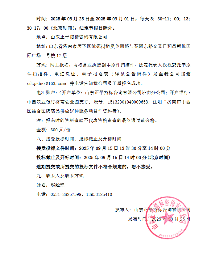 【济南市中西医结合医院】山东省济南市中西医结合医院药品供应延伸服务项目招标公告