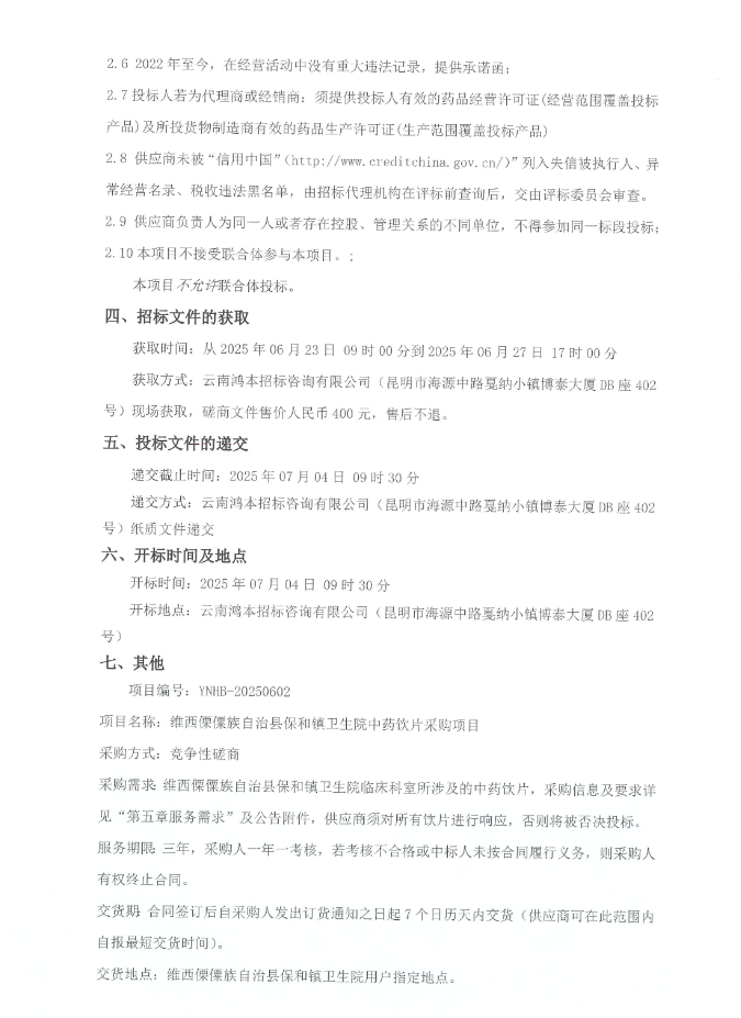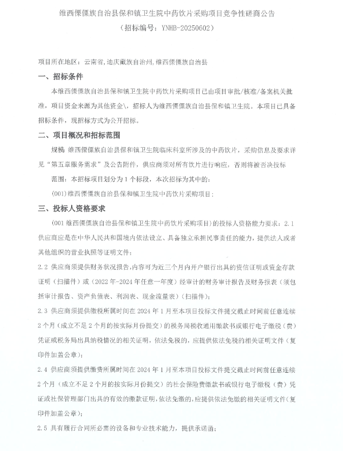 【迪庆藏族自治州维西傈僳族自治县保和镇卫生院】云南省维西傈僳族自治县保和镇卫生院中药饮片采购项目竞争性磋商公告