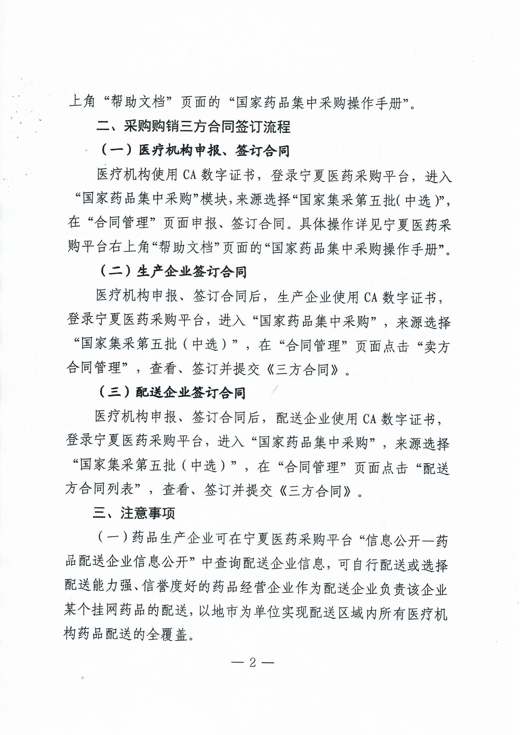 请生产企业使用CA数字证书,登录宁夏医药采购平台(网址:https://nxyp.nxggzyjy.org/std/login.html),进入“国家药品集中采购”,点击“配送协议管理一配送协议设置”,来源选择“ 国家集采第五批(中选)”,自主选择药品配送企业。具体操作详见宁夏医药采购平台右上角“帮助文档”页面的“国家药品集中采购操作手册”。