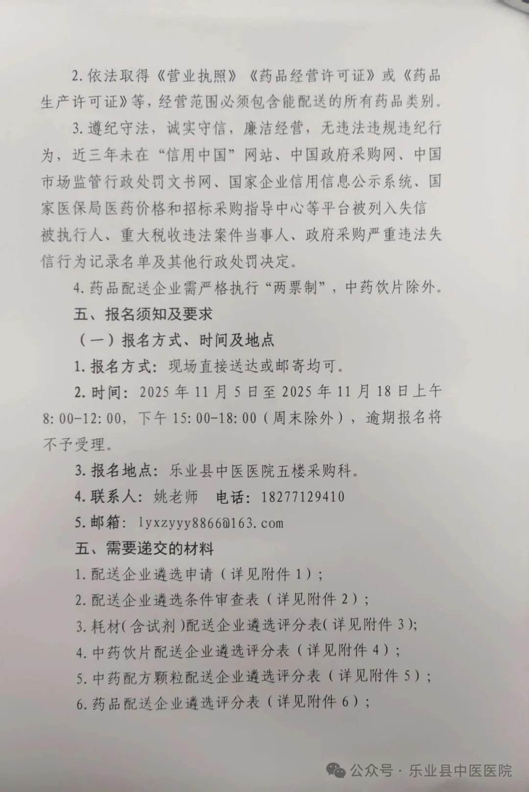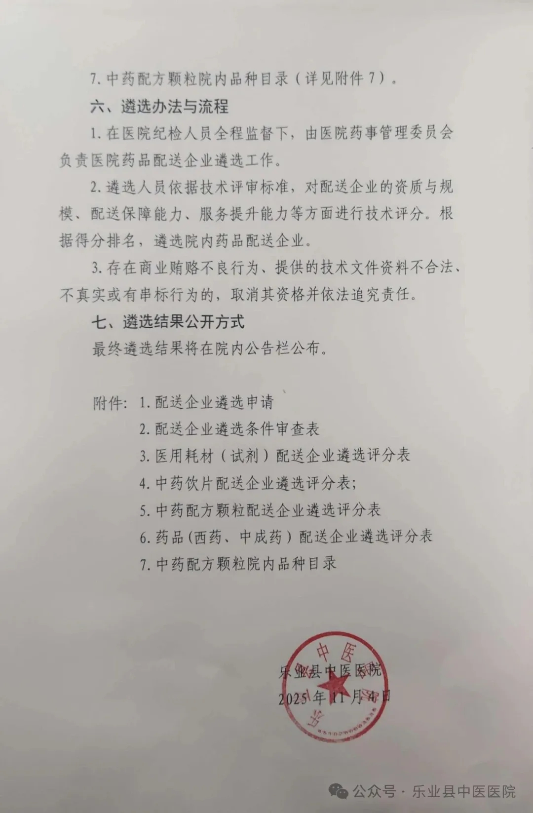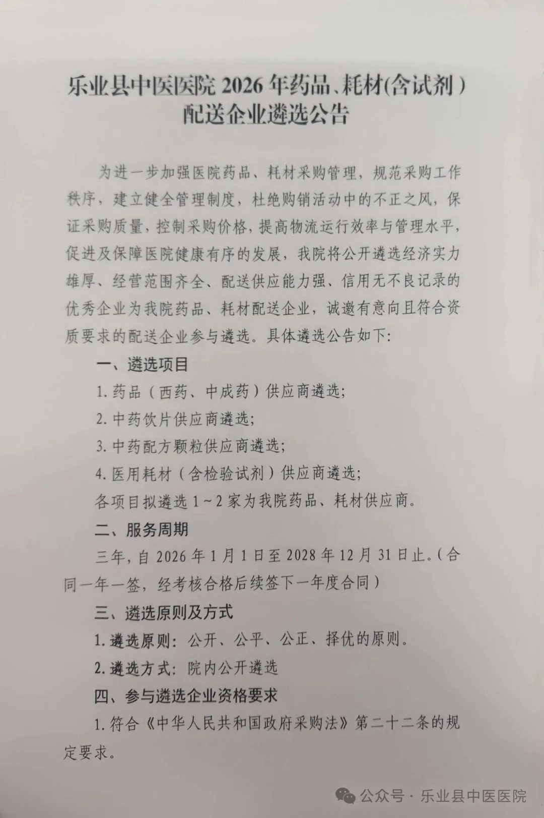 【百色市乐业县中医医院】广西壮族自治区百色市乐业县中医医院2026年药品、耗材(含试剂)配送企业遴选公告