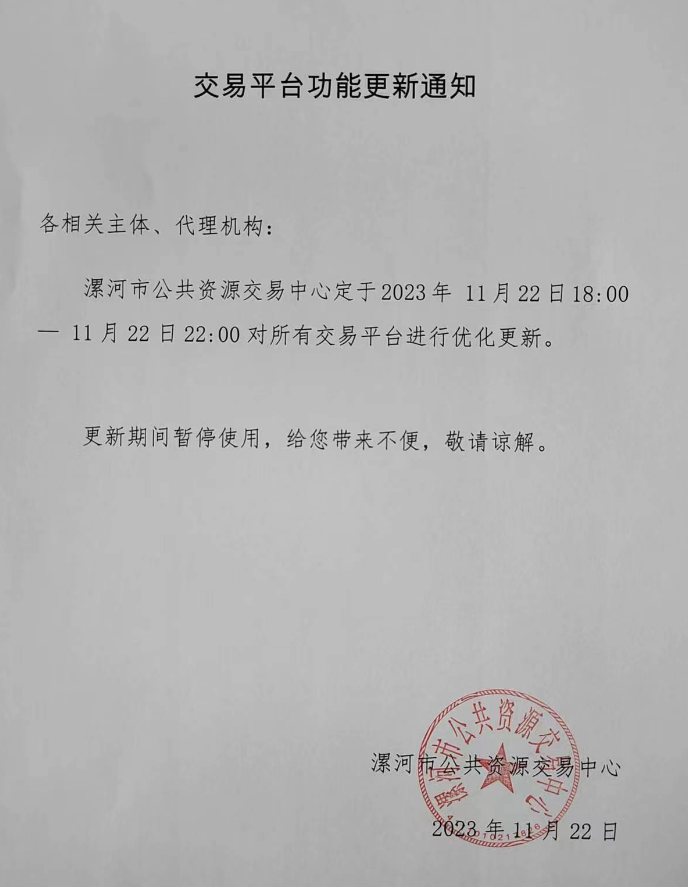 【漯河】河南省漯河市公共资源交易中心交易平台更新,暂停使用通知