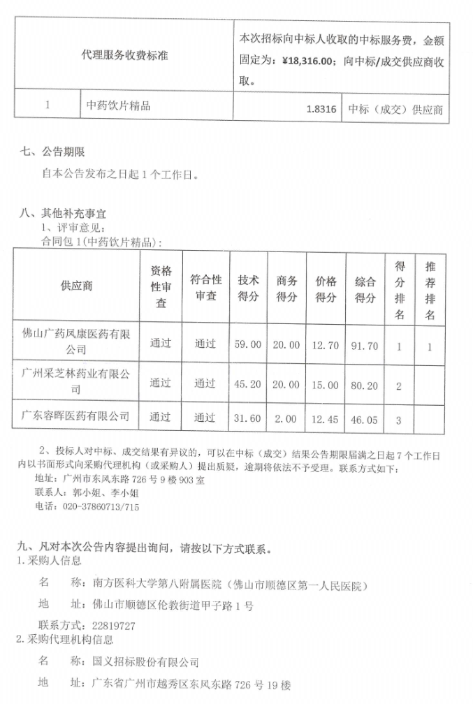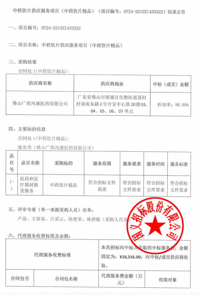 【南方医科大学第八附属医院】广东省中药饮片供应服务项目(中药饮片精品)(项目编号:0724-2510Z1433322)结果公告