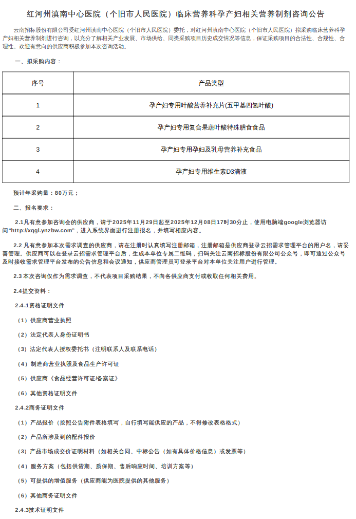【红河州滇南中心医院】云南省红河州滇南中心医院(个旧市人民医院)临床营养科孕产妇相关营养制剂咨询公告