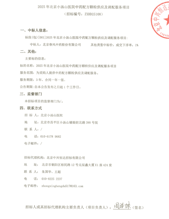 【北京小汤山医院】2025年北京小汤山医院中药配方颗粒供应及调配服务项目