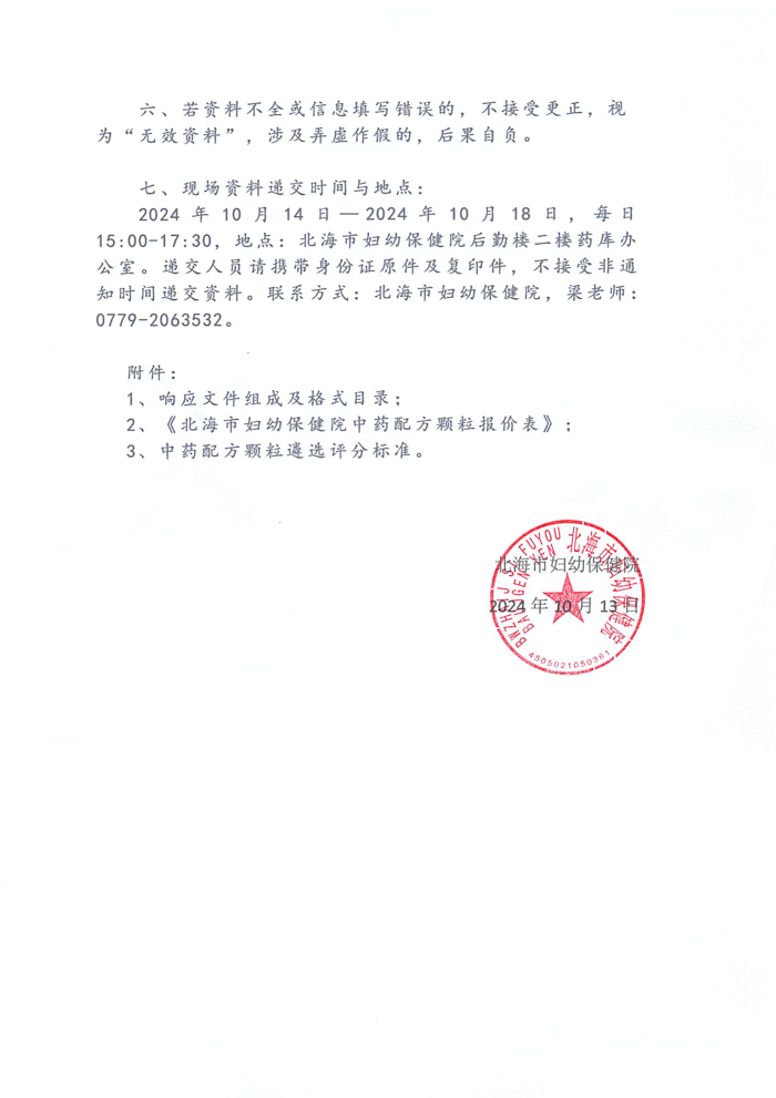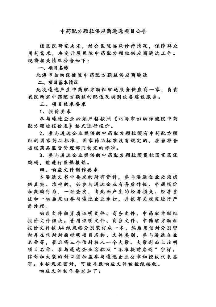 【北海市妇幼保健院】广西壮族自治区北海市妇幼保健院关于中药配方颗粒供应商遴选项目公告