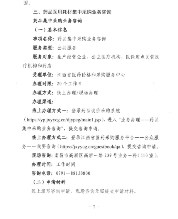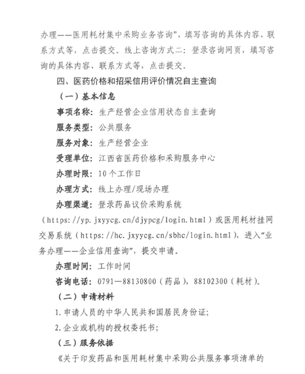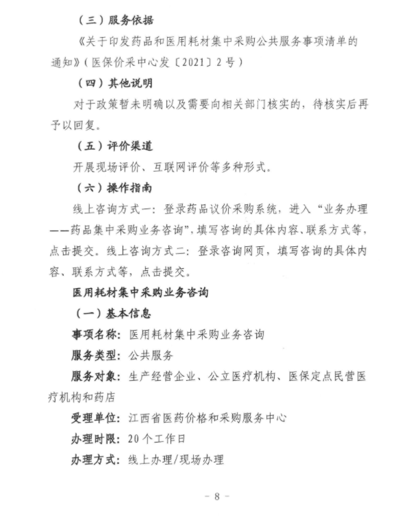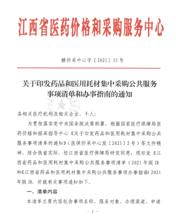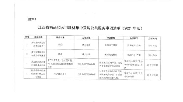 【江西】江西省关于印发药品和医用耗材集中采购公共服务事项清单和办事指南的通知