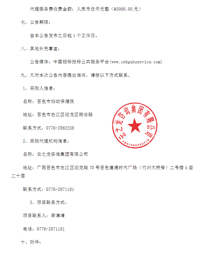 【百色市妇幼保健院】广西壮族自治区云之龙咨询集团有限公司2024年度叶酸片采购项目(YZLBS2024-C3-020-BSQT)成交结果公告